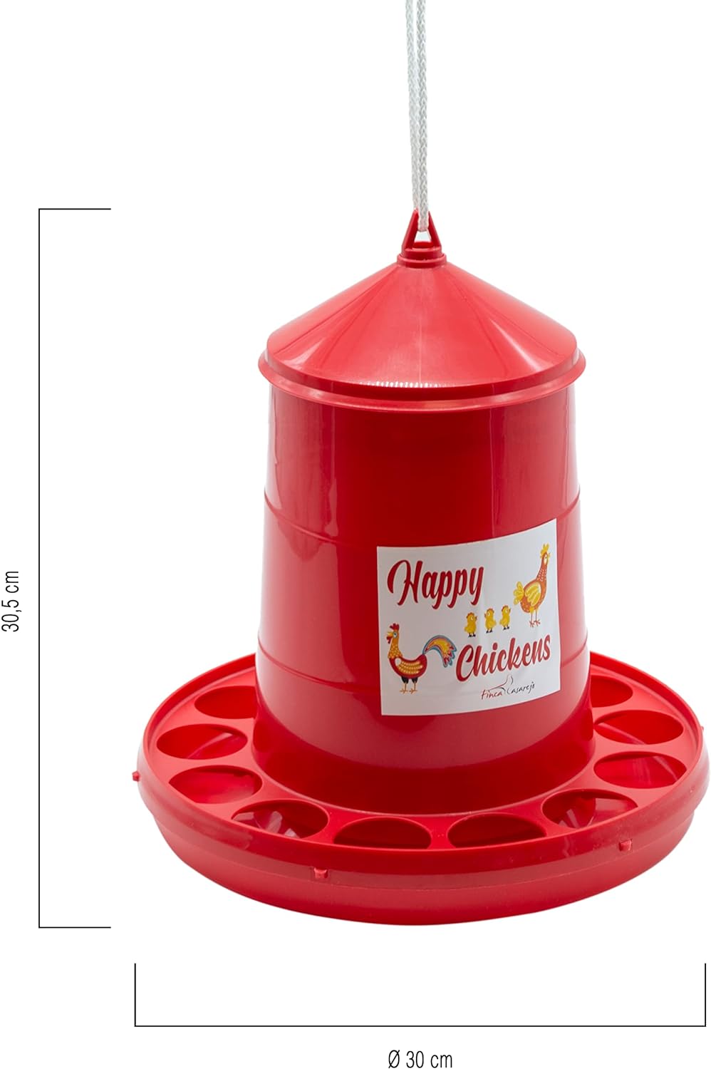 - ✅ Futterautomat mit 4 KG Fassungsvermögen: Trichter für Zwerghühner, Junghennen und anderes kleines Geflügel. Anti-Abfall-Futtersystem. Kann auf den Boden gestellt oder aufgehängt werden.