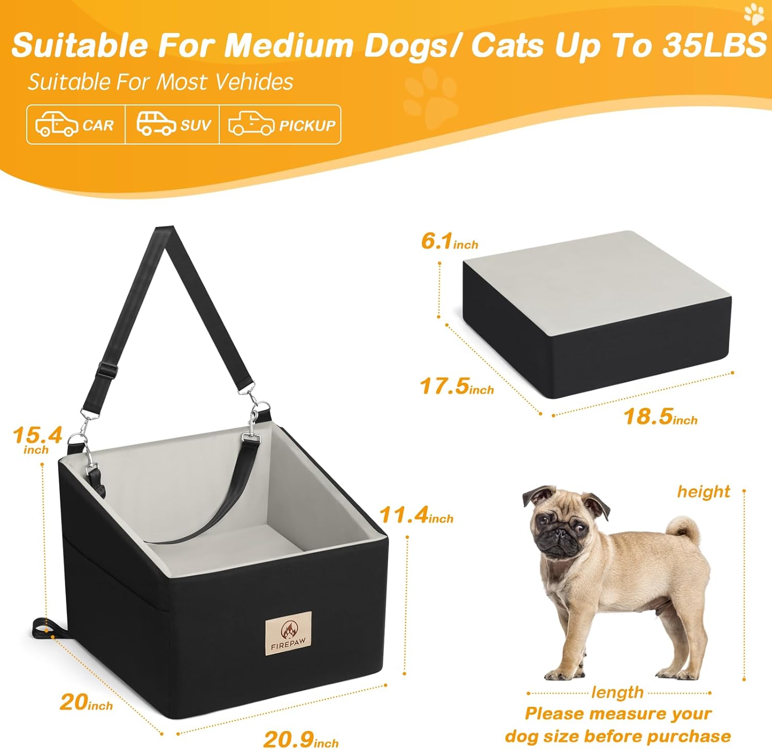 - 【MITTELGROSSER HUNDEAUTOSITZ】- 20.9'' (L) X 20'' (W) X 15.4'' (H), Der Haustier-Autositz ist geeignet für kleine, mittelgrosse Hunde und Katzen bis zu 35 lbs, Es ist entworfen, um fast alle Arten von Autos, Lastwagen, SUVS passen, können Sie leicht