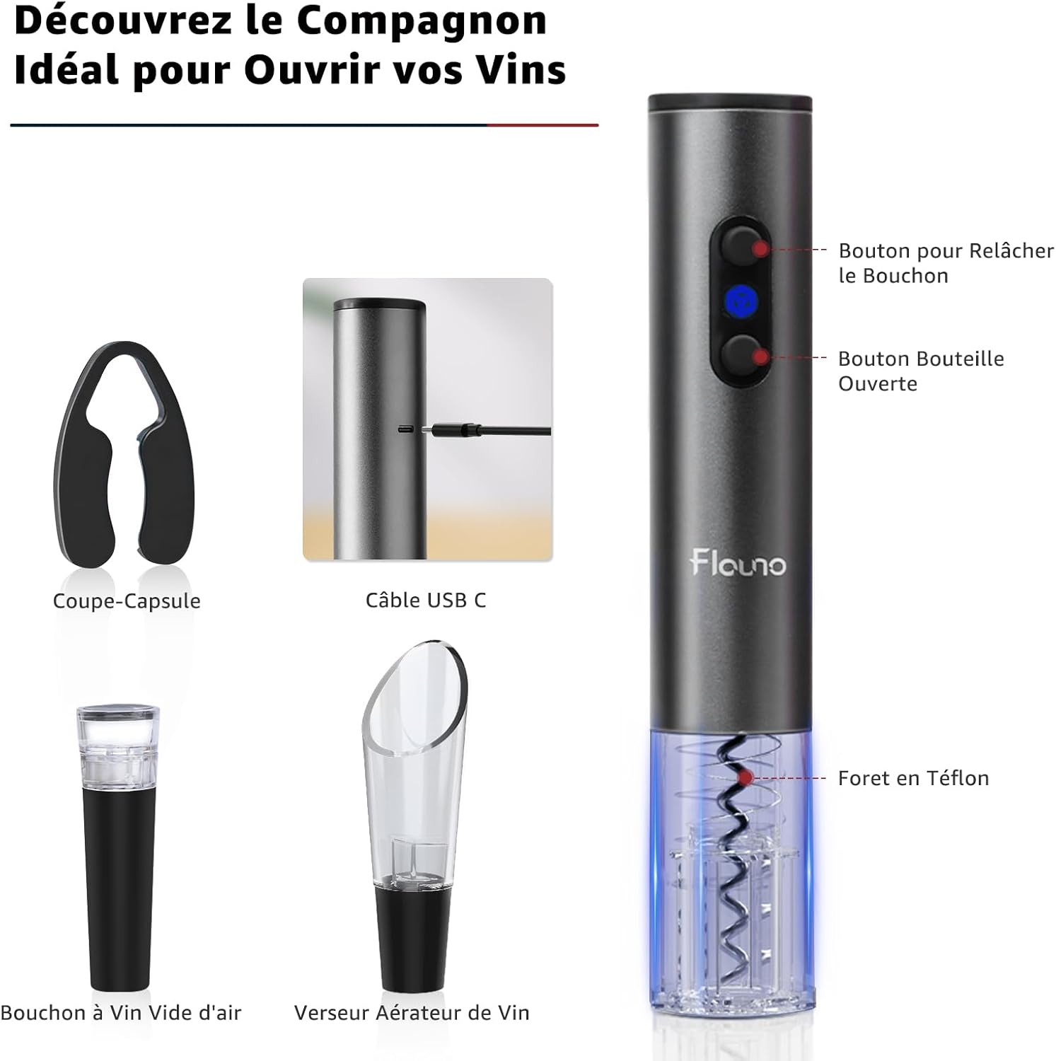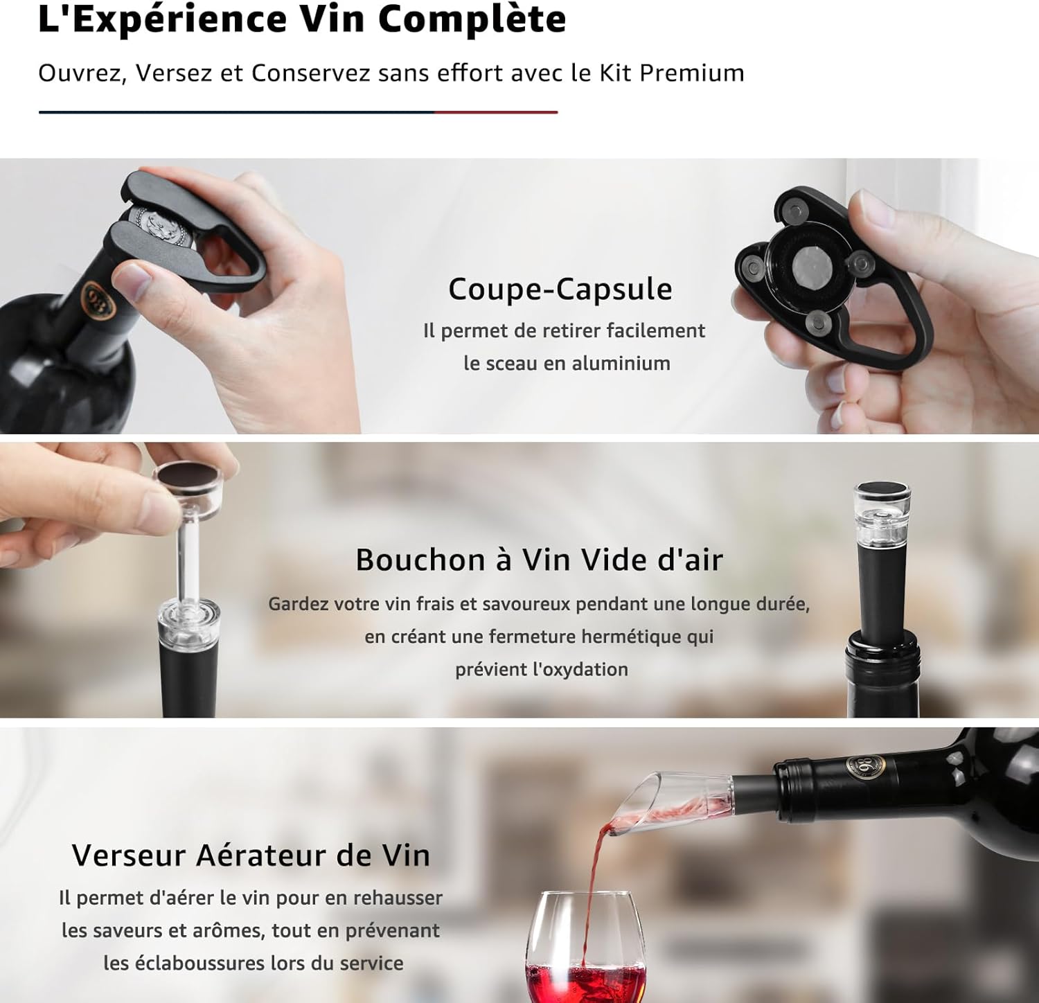 - Komplettes Profi-Set: 1. Folienschneider – entfernt leicht Aluminiumversiegelung. 2. Professioneller elektrischer Flaschenöffner – Öffnen Sie Ihre Weinflaschen mühelos. 3. Vakuum Weinverschluss - bewahrt dauerhaft das Aroma Ihres Weins. 4. Weinbelüfter – verhindert Verschütten während des Prozesses des Weins. Dieses komplette Set wird jedem Weinliebhaber gefallen, egal ob Mann oder Frau.