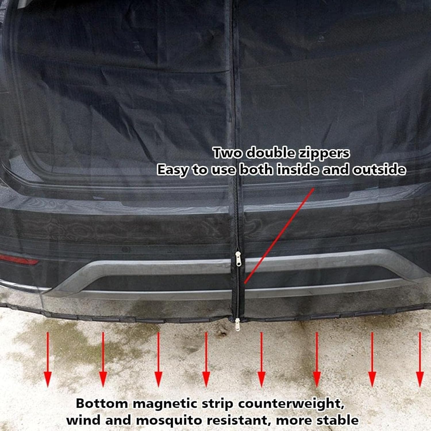 - 🚘Grosse Grösse: 180 x 150 cm mit Reissverschluss, Öffnung innen und aussen. Kann die Belüftung und den Sonnenschutz des Fahrzeugs verbessern. Die Sonnenblende für die Heckklappe des Autos kann den Luftstrom des Fahrzeugs verbessern, Ihre Kinder