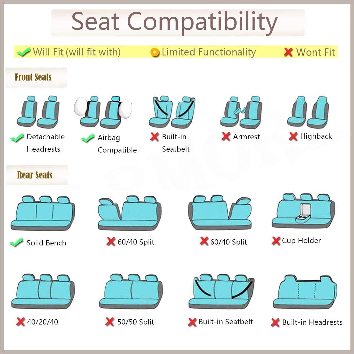 - Komplettset beinhaltet: 2 Vordersitzbezüge, 1 Rückbankbezug, 1 Rückbankunterbezug, 5 separate Kopfstützenbezüge, 1 Beutel mit Haken. (Bitte beachten: die Haken befinden sich im Kopfstützenbezug)