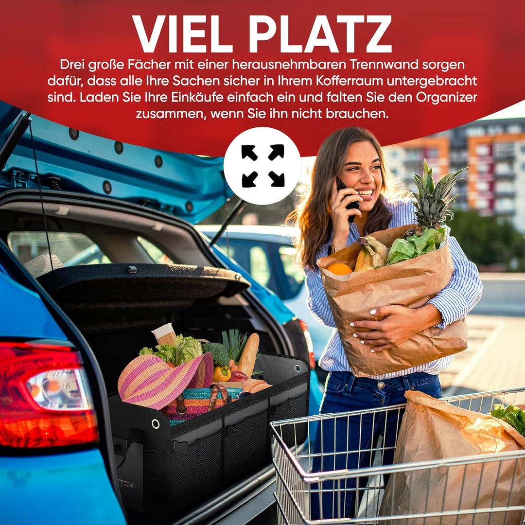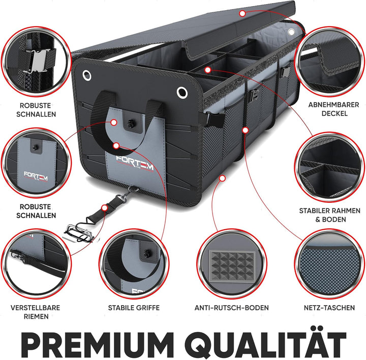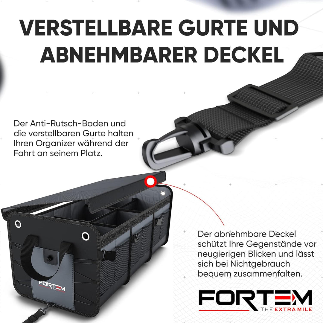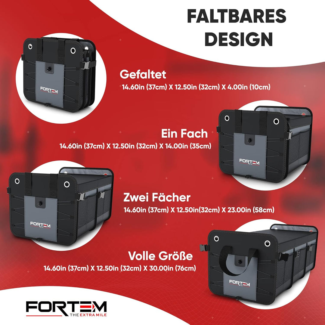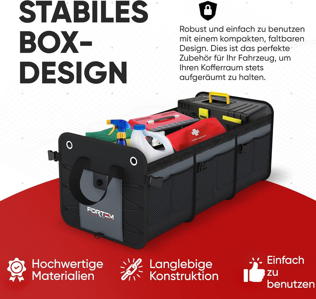 - Multifunktionale Auto Tasche Kofferraum - Die Fortem Kofferraumboxen machen die Organisation im Auto leicht und einfach. Organisieren Sie eine Vielzahl von Gegenständen, von Lebensmitteln bis zu Büroartikeln, Ac-cessoires (Handtaschen, Schuhe) oder Kinderspielzeug. Bringen Sie Ordnung in Ihren Kofferraum und schaffen Sie Platz für Ihre Kühlbox oder Ihre Campingausrüstung.