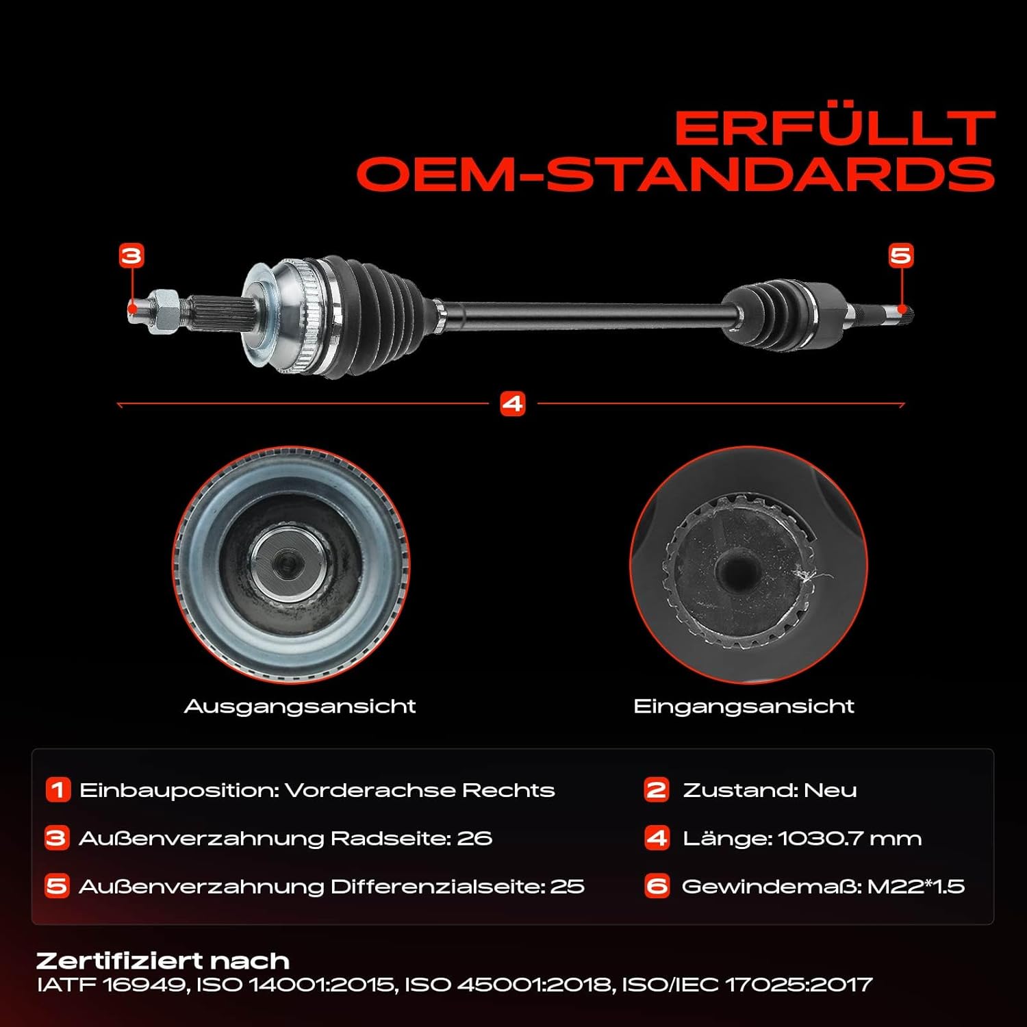 - 【Technische Info.】Länge: ca. 1030.7, Aussenverzahnung Radseite: 26, Verzahnung Differentialseite: 25, ABS-Ring-Verzahnung: 47 Zähne