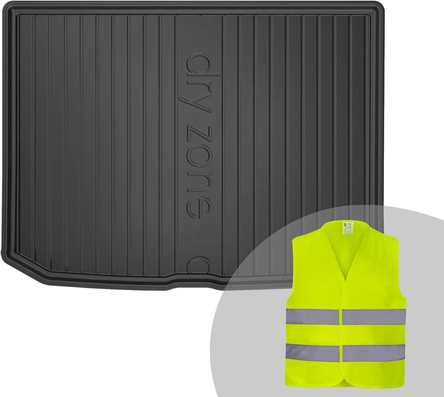 - Das Set enthält eine Kofferraummatte aus TPE und eine Warnweste;