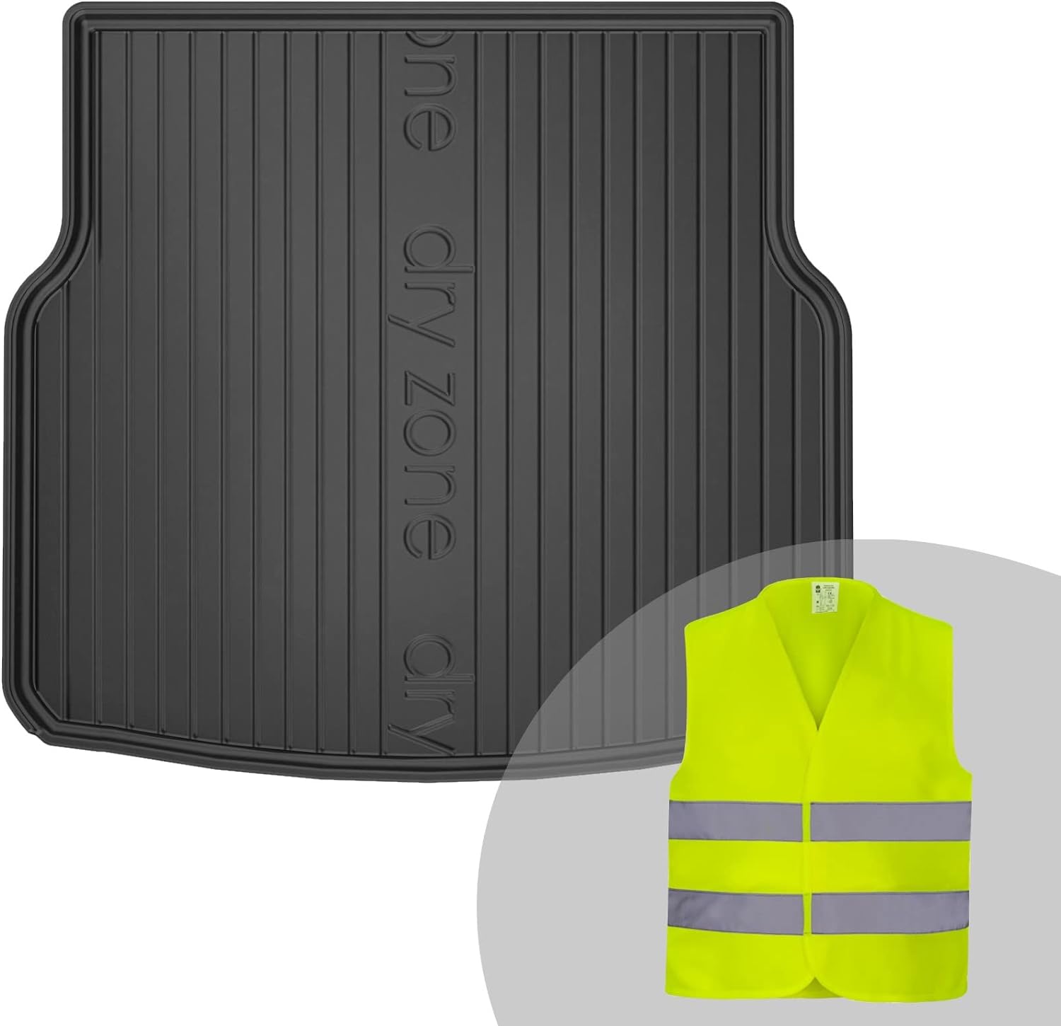 - Das Set enthält eine Kofferraummatte aus TPE und eine Warnweste;