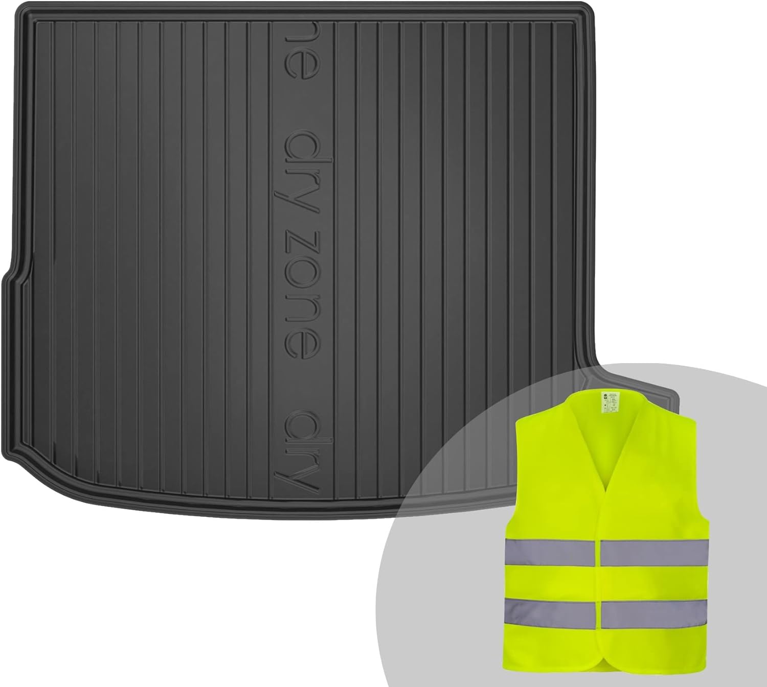 - Das Set enthält eine Kofferraummatte aus TPE und eine Warnweste;