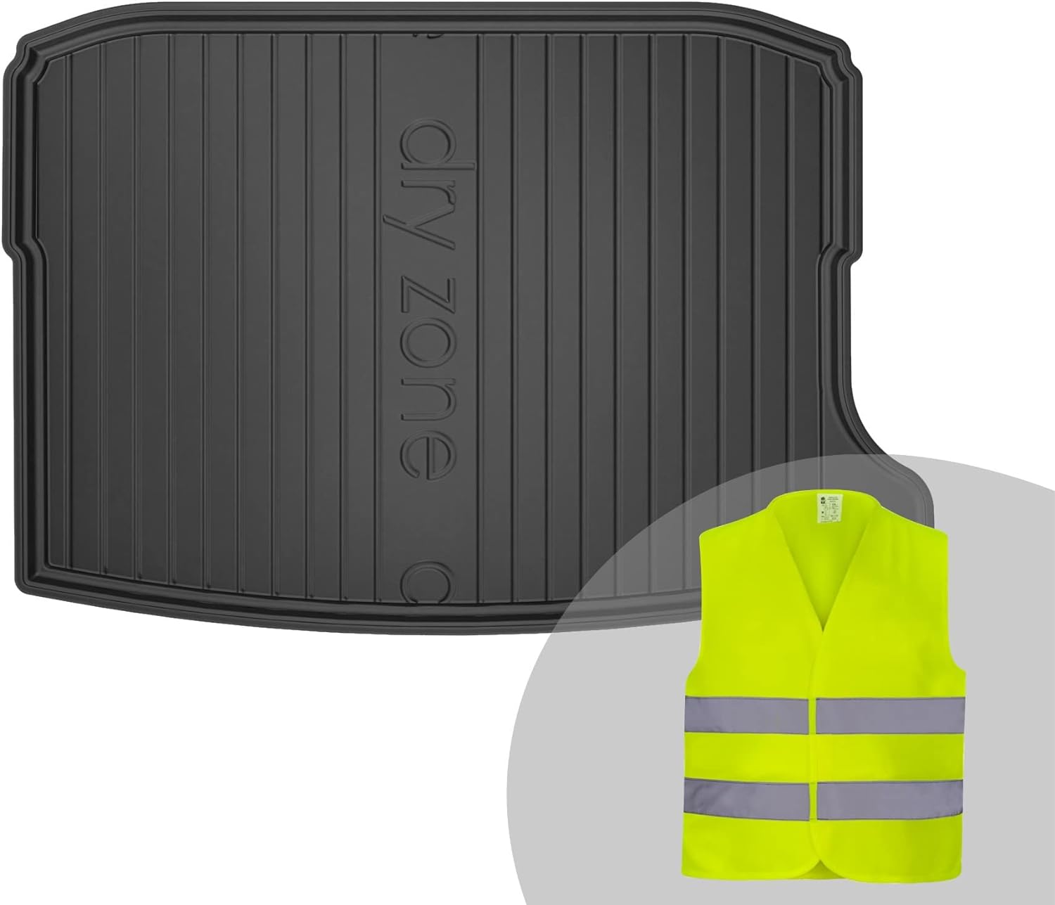 - Das Set enthält eine Kofferraummatte aus TPE und eine Warnweste;