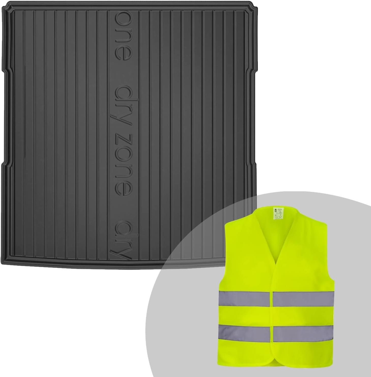 - Das Set enthält eine Kofferraummatte aus TPE und eine Warnweste;