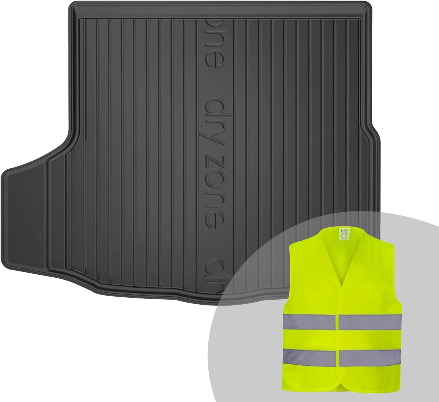 - Das Set enthält eine Kofferraummatte aus TPE und eine Warnweste;