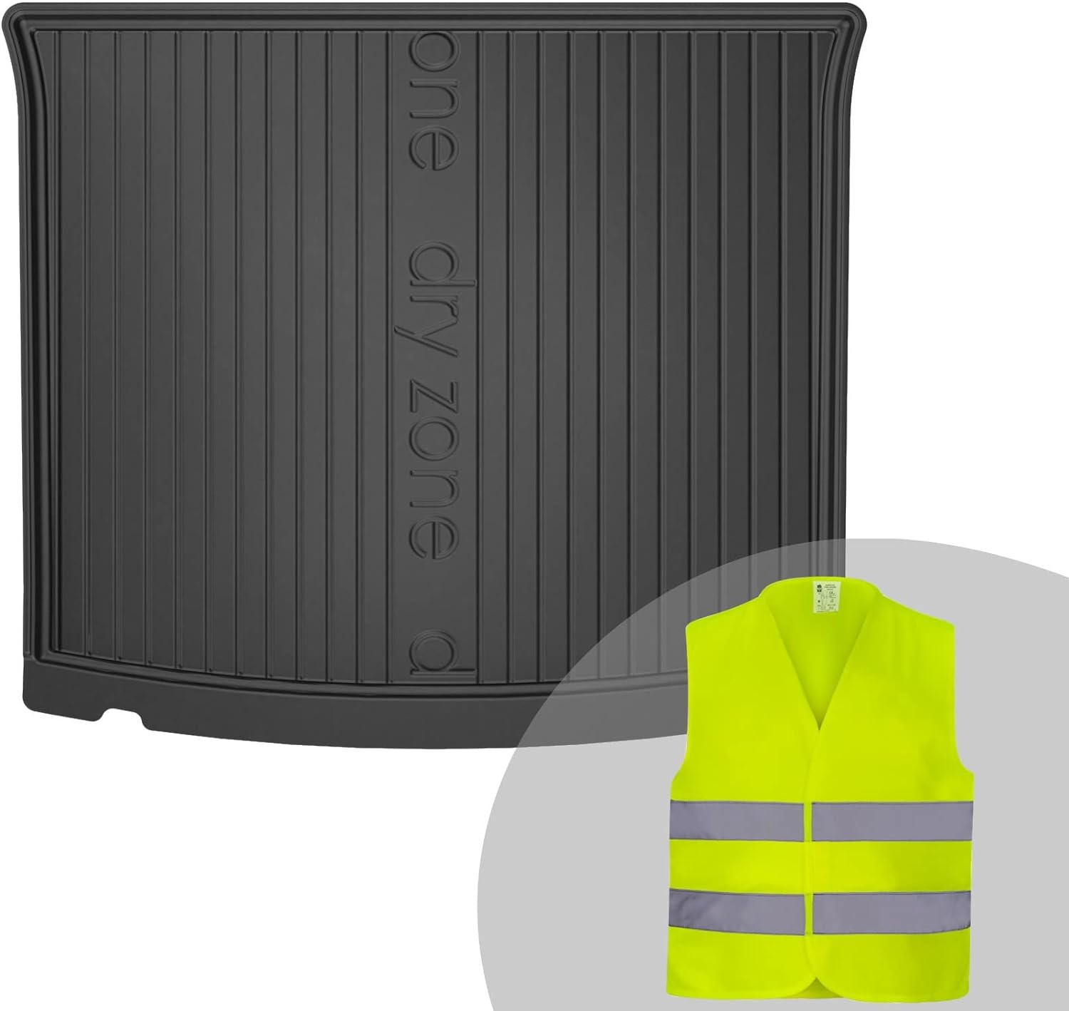 - Das Set enthält eine Kofferraummatte aus TPE und eine Warnweste;