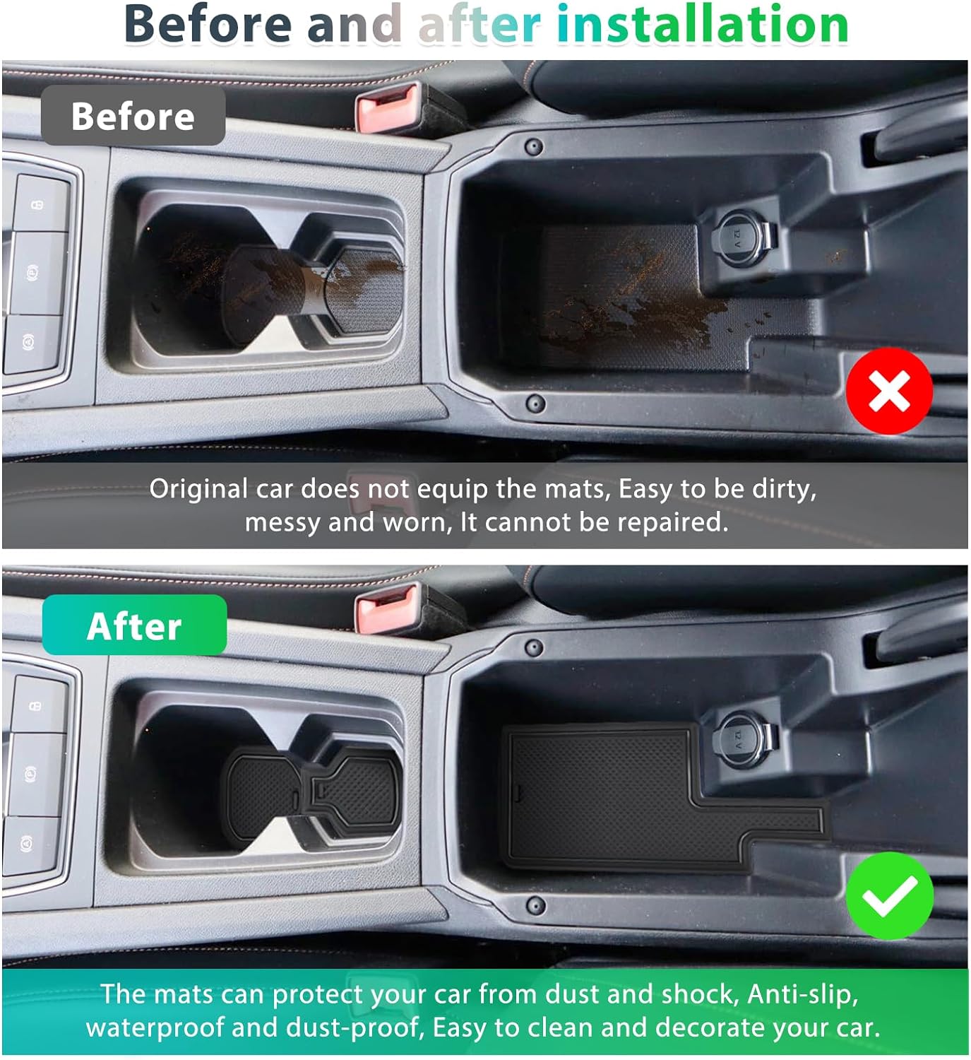 - 【Umfassender Schutz Ihres Autos】 Diese Matten werden in verschiedenen Fahrzeuginnenräumen verwendet, um die Mittelkonsole, die Armlehnenbox, Getränkehalter, Türnähte und andere Teile vor Beschädigungen durch Flüssigkeiten oder scharfe