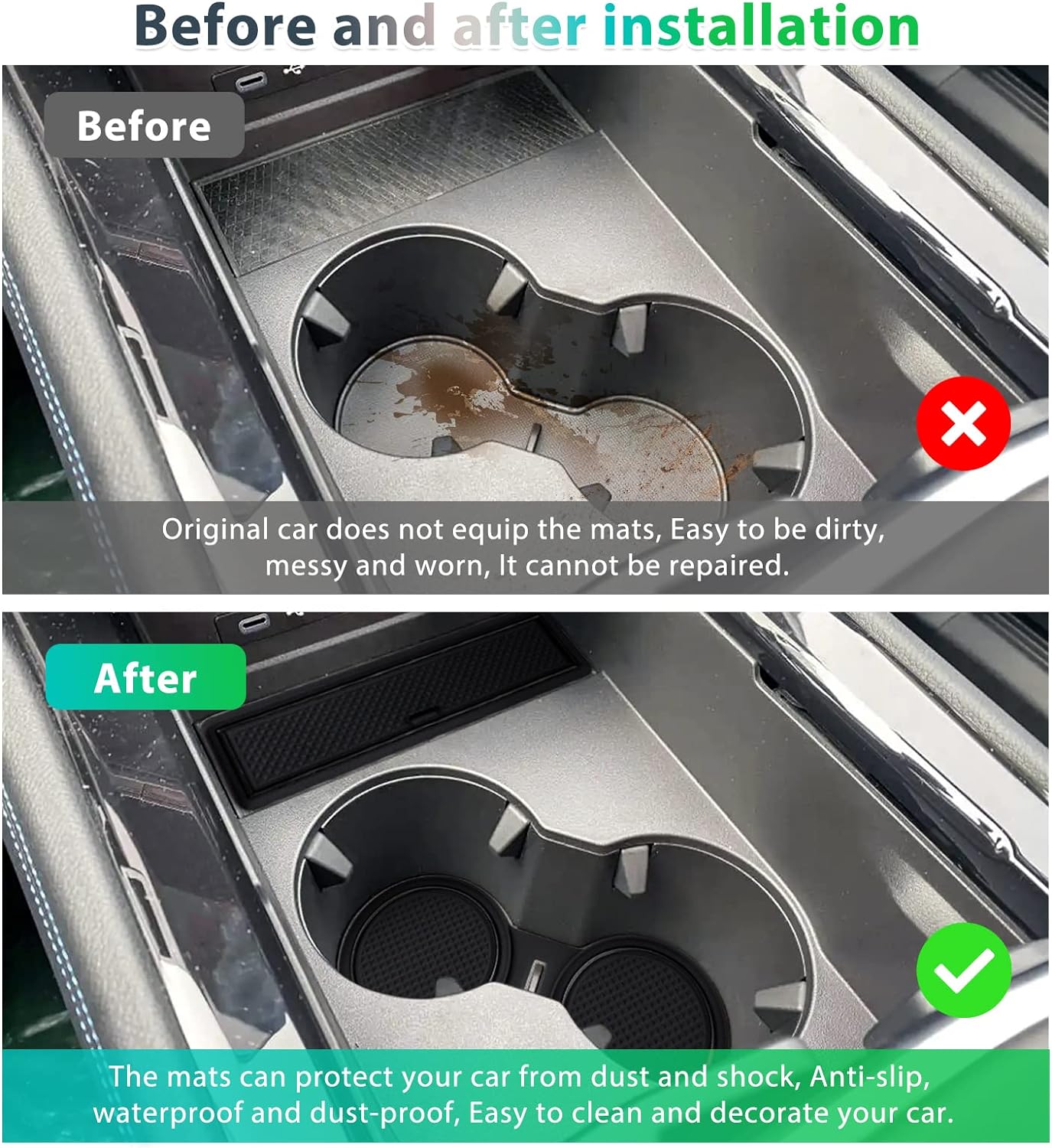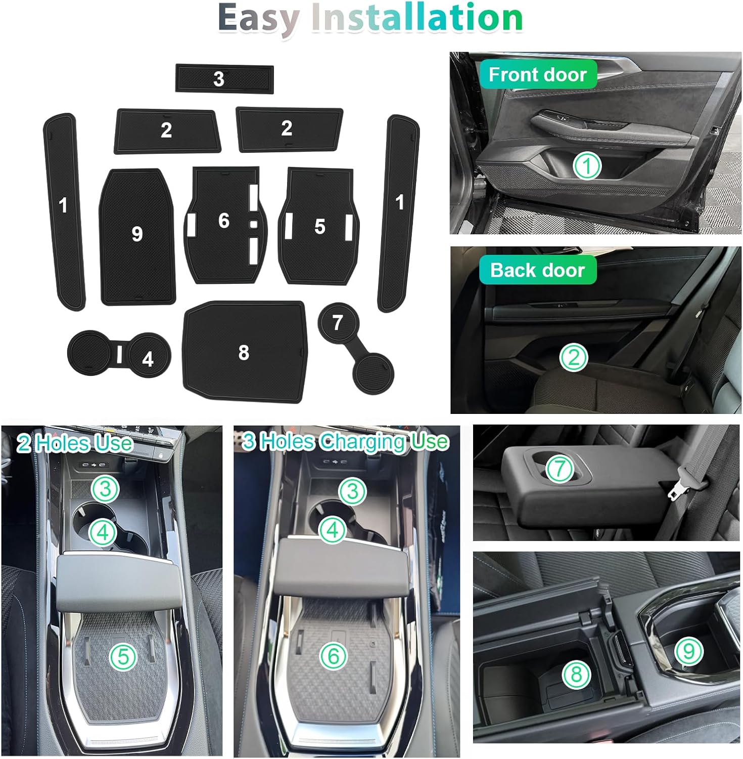 - 【Umfassender Schutz Ihres Autos】 Diese Matten werden in verschiedenen Fahrzeuginnenräumen verwendet, um die Mittelkonsole, die Armlehnenbox, Getränkehalter, Türnähte und andere Teile vor Beschädigungen durch Flüssigkeiten oder scharfe