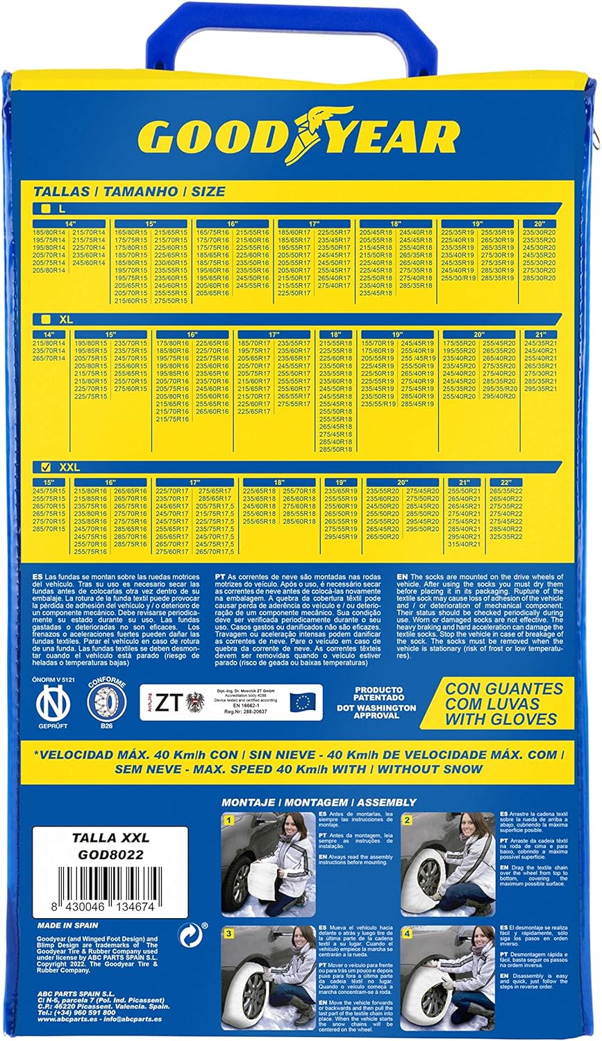 - Kompletter Satz von 2 Schneeketten aus 100% Textil für 2 Radantrieb. Sie beschädigen den Reifen nicht, völlig sicher. Wird mit 2 Handschuhen für die Montage geliefert. Patentiertes Produkt (Önrom V 5121 GEPRÜFT, CONFORM B26).