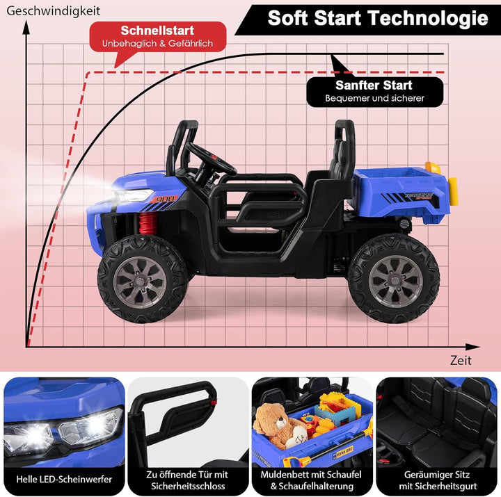 - Fernbedienung & Slow-Start-Funktion: Unser Kinderauto lässt Kinder nicht nur echten Fahrspass erleben, sondern kommt auch mit einer Fernbedienung, mit der Eltern das Auto fernsteuern können. Und es verwendet die Slow-Start-Technologie, um die