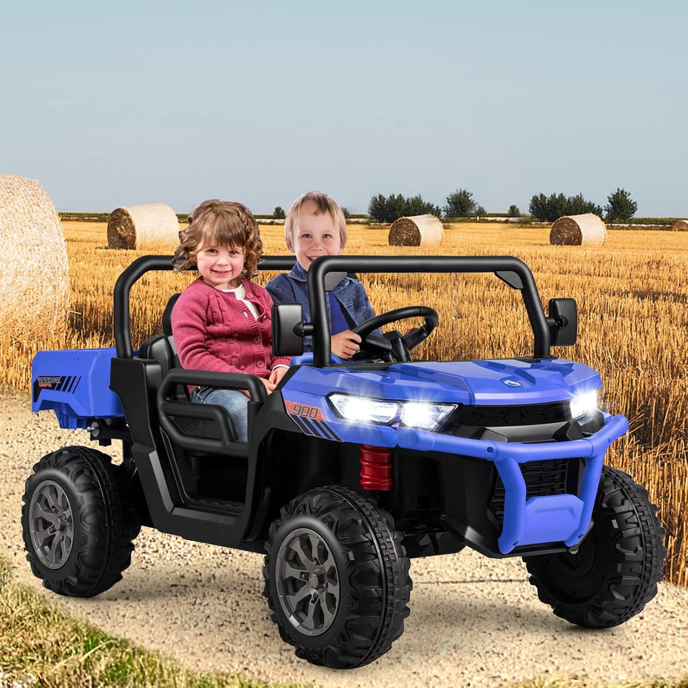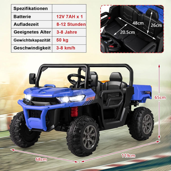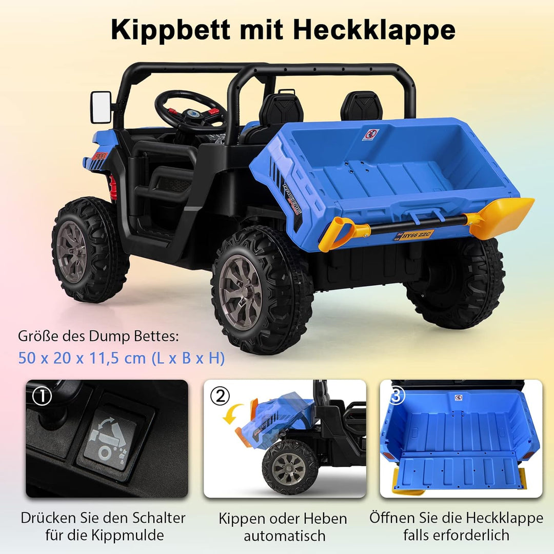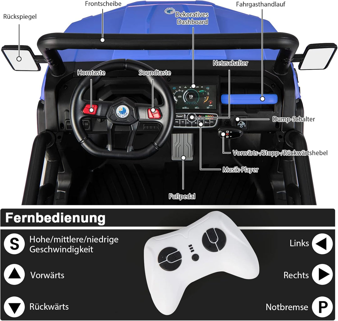 - Musik & Sicherer Sitz: Dieses elektrische Kinderauto verfügt nicht nur über Musik und Hupe, sondern kann auch externe Musikgeräte über USB- und Aux-Anschlüsse anschliessen, um Ihren Kindern mehr Spass zu bereiten. Zwei breite Sitze mit