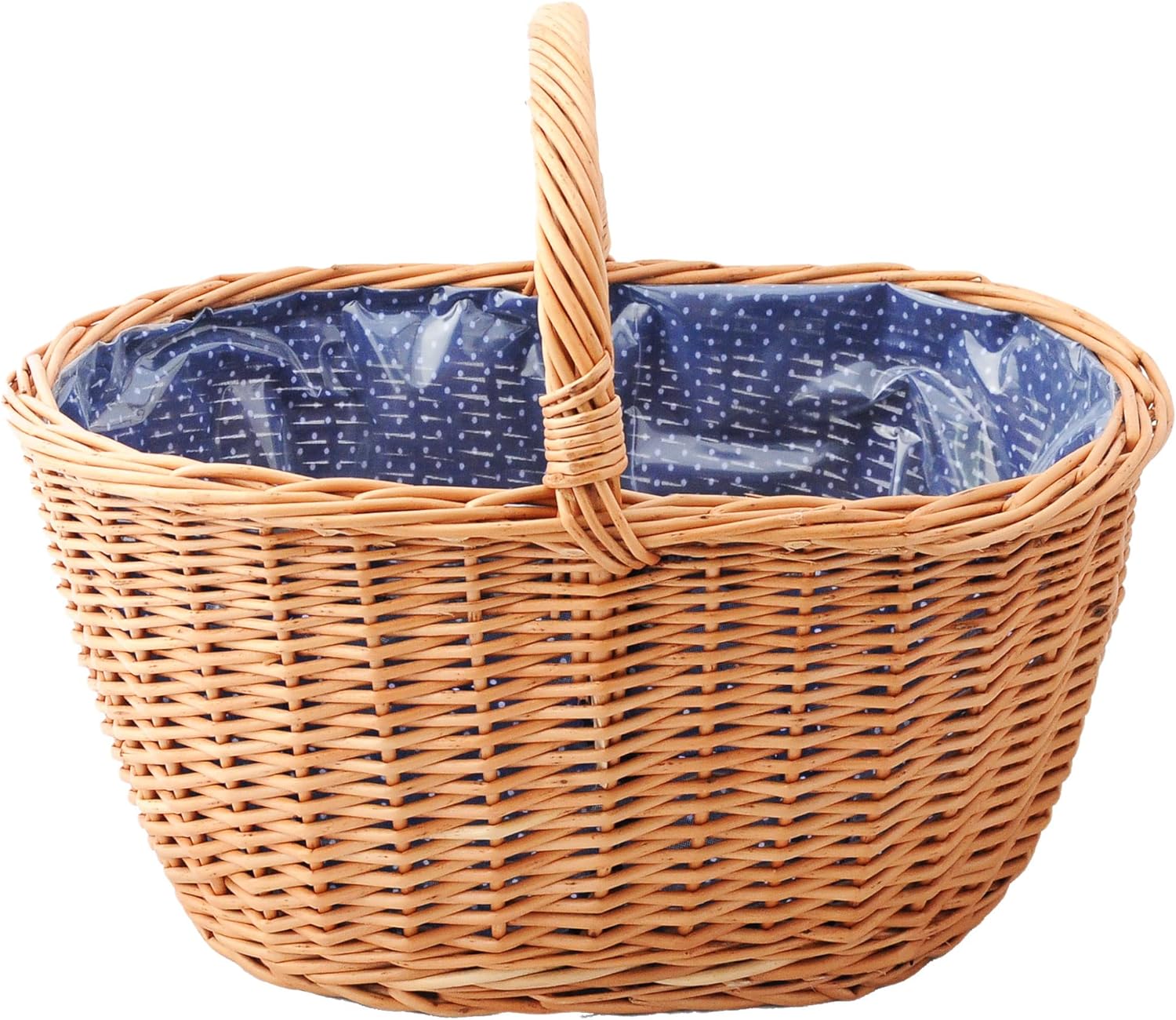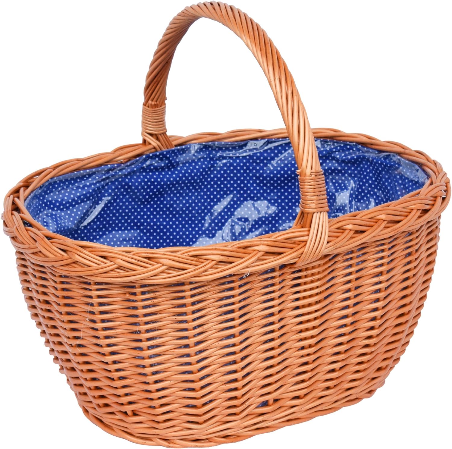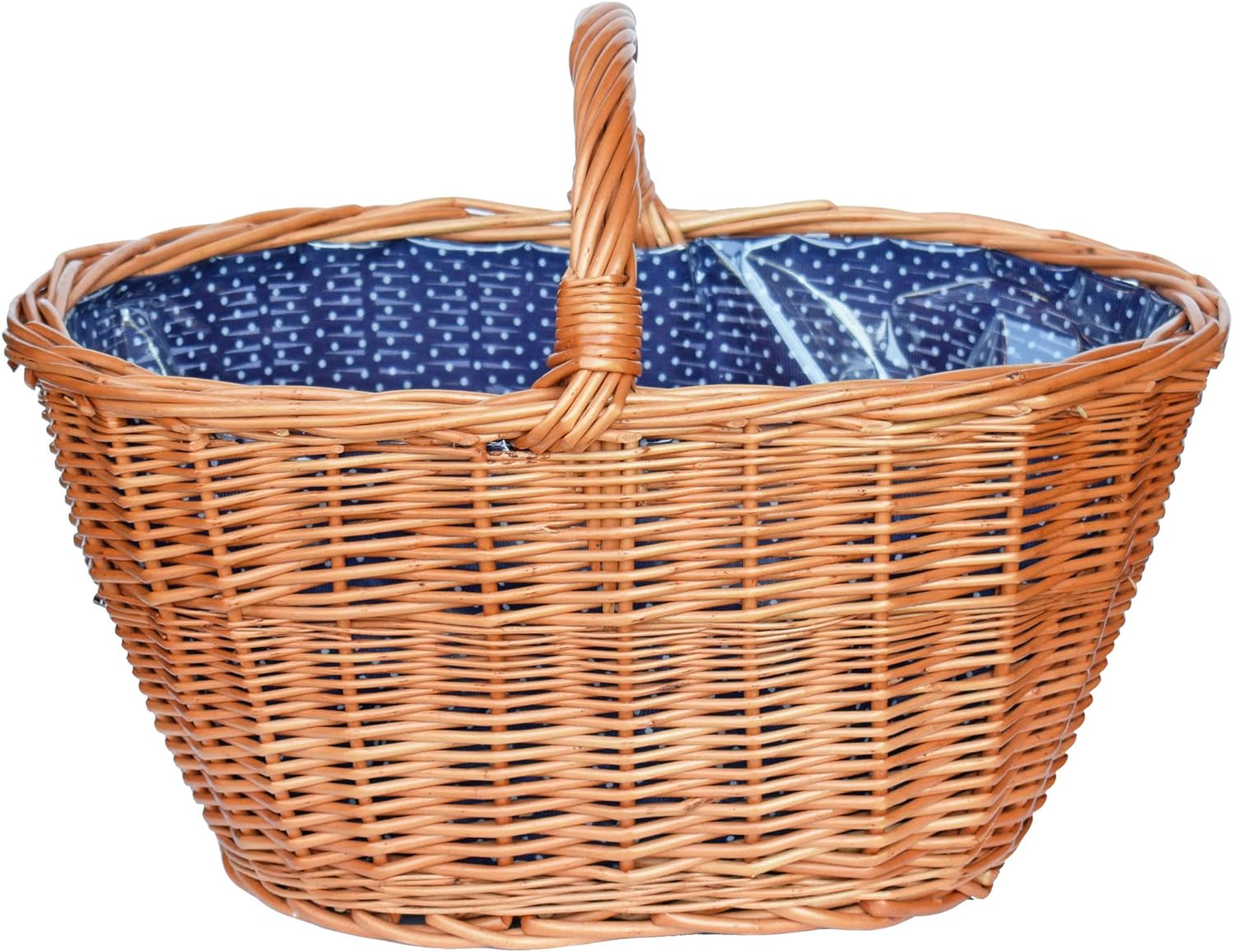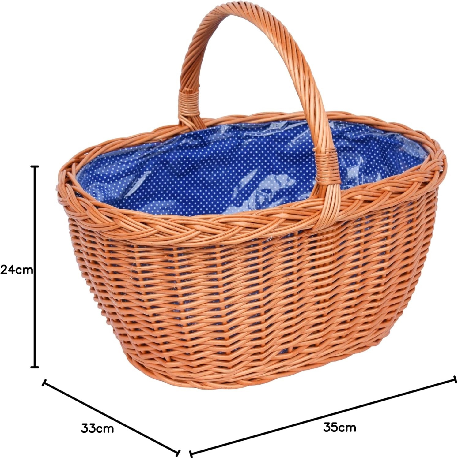 - Der blauer Innenstoff mit kleinen weissen Punkten macht den Korb nicht nur elegant und noch attraktiver, sondern verbessert auch den Transportkomfort von Produkten, besonders praktisch für den Grosseinkauf.