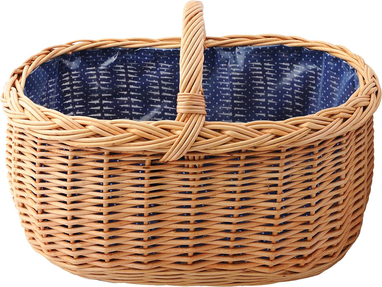 - Einkaufskorb aus Weide mit Henkel – praktischer und geräumiger geflochtener Weidenkorb - ideal auch als Einkaufskorb, Präsentkorb oder Pilzkorb