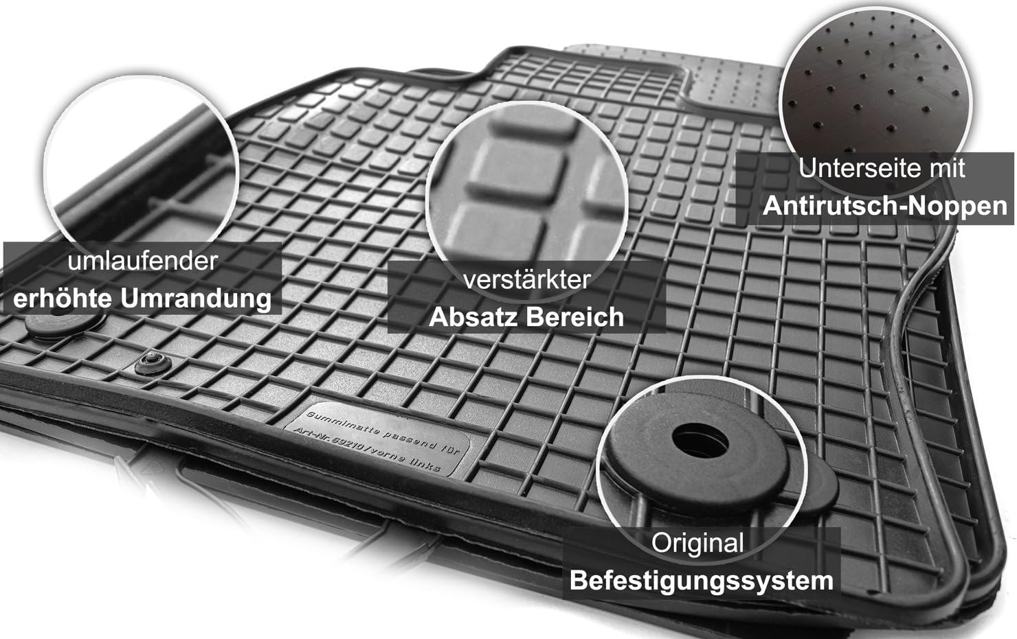 - Zu 100% Passgenau - hoher umlaufender Rand - abwaschbar - Wasserdicht - sehr langlebige Gummimatten - Geruchsneutral