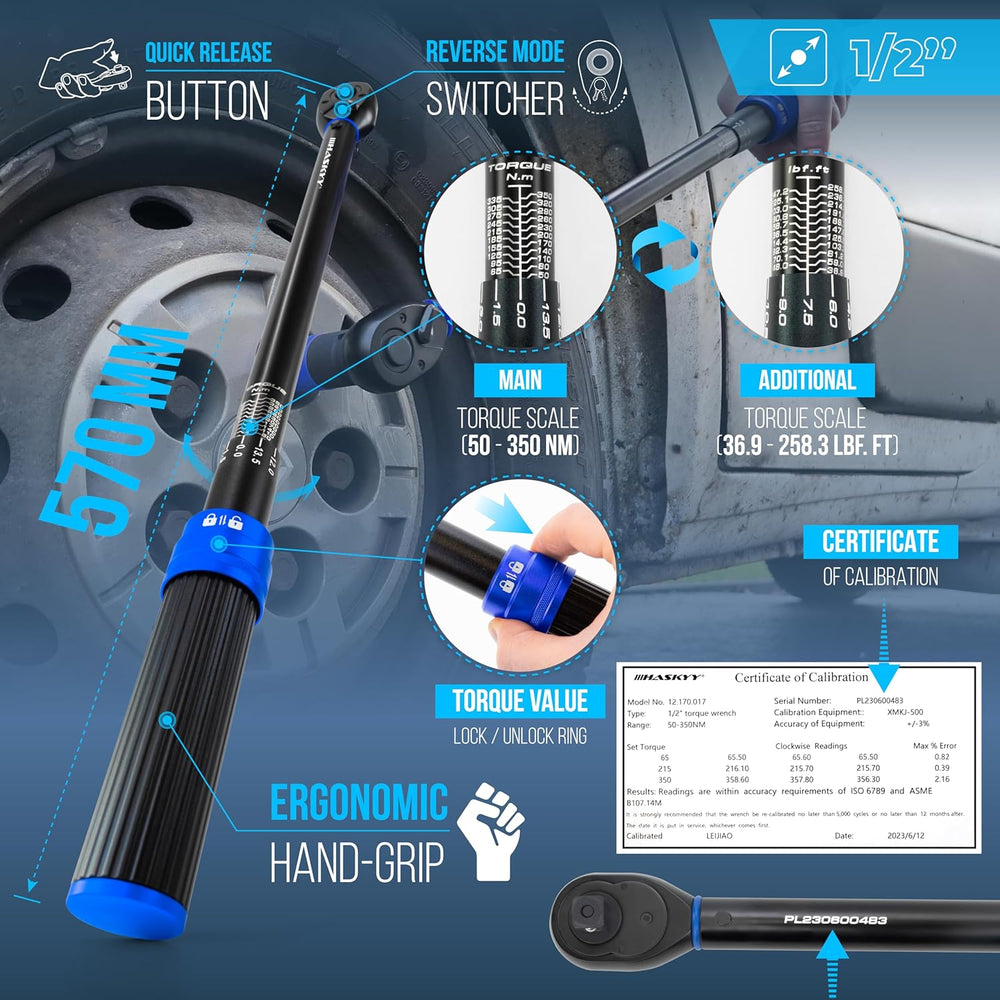 - Drehmomentbereich: 50-350 Nm - sehr genau in 1,5er Schritten einstellbar.
