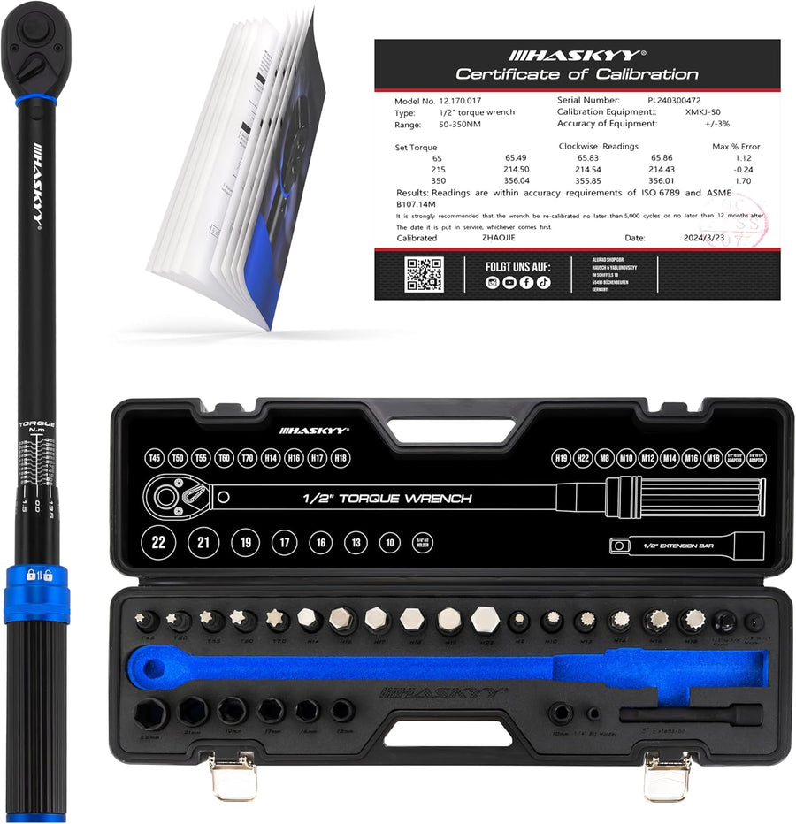 - Präzision mit Zertifikat: ± 3% - Vollständig kalibriert gemäss Anforderungen ISO 6789-1:2017, DIN EN 6789-1:2017-07, ASME B107.14M und Testmethoden für Konformitätstests.