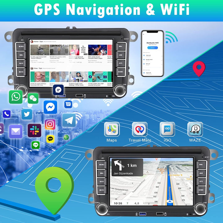 - 【GPS-Navigation/WIFI/Bluetooth】:Autoradio 2 din Carplay für VW Golf 5 6 mit integriertem GPS, kompatibel mit einer Vielzahl von Navigationsprogrammen, Sie können die Online-Navigationsroute oder die Offline-Navigation auswählen. Das Radio unterstützt WIFI-Verbindung, Sie können online im Internet surfen und YouTube-Videos durchsuchen. Unterstützen Sie die Bluetooth-Verbindung von Mobiltelefonen, um Freisprechen und Bluetooth-Musik zu erreichen.