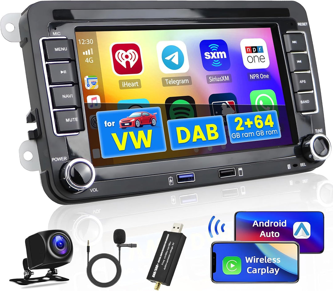 - 【Multifunktionales Autoradio】: Das Für VW Passat B6 B7 DAB Autoradio 2 din android Carplay unterstützt die automatische oder manuelle Suche nach UKW-Sendern und unterstützt die RDS-Funktion. Mit der HI-FI-Funktion kommt die Musik, die Sie hören, näher an den Originalton heran. Dieses Autoradio mit Navig unterstützt die originalen Auto-Lenkradsteuerungen. Wir haben eine AHD-Rückfahrkamera als Geschenk beigelegt, die Sie anschliessen und beim Rückwärtsfahren verwenden können, um einen Blick hinter das Auto zu erhalten.