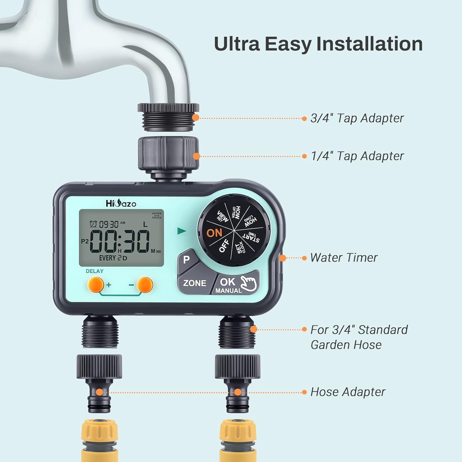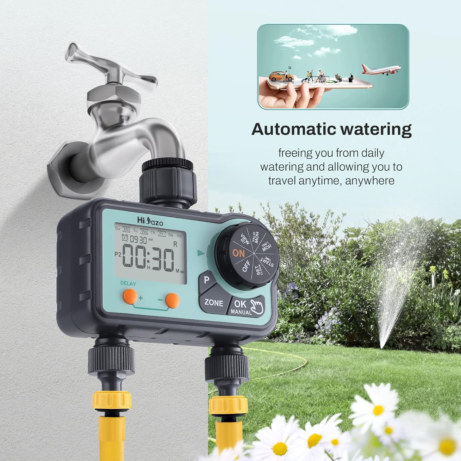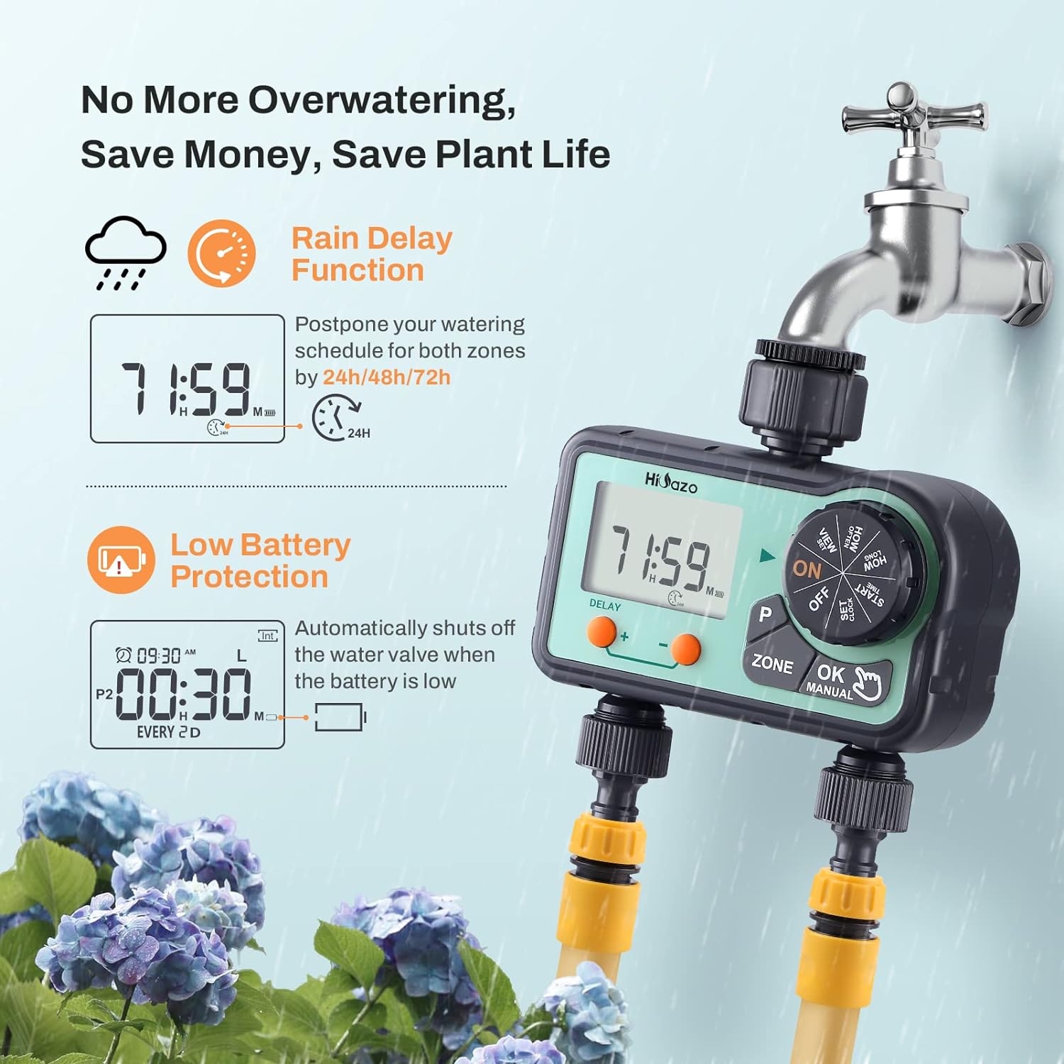 - Sparen Sie Zeit, sparen Sie Wasser, sparen Sie Geld: Der Hioazo-Wassertimer kann mit 2 AAA-Alkalibatterien sechs Monate lang ununterbrochen arbeiten und den Gartenschlauchhahn für Rasen, Hof, Garten, Gewächshaus, Schwimmbad und mehr automatisieren. Es