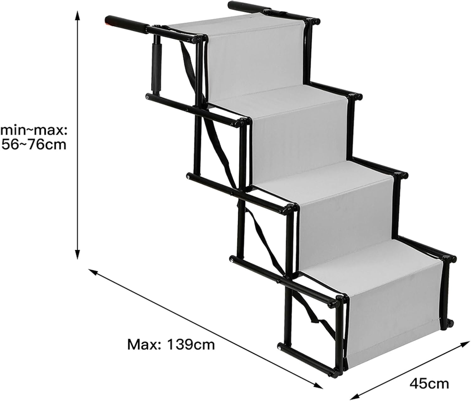 - đ¶ăPraktisch und AnwendbarăDie Treppenrampe ermöglicht Hund und Herrchen einen komfortablen Ein- und Ausstieg. Die Höhe und die Neigung der faltbaren Hundetreppe kann individuell angepasst werden, daher kann es auf alle Arten von Autos anwendbar