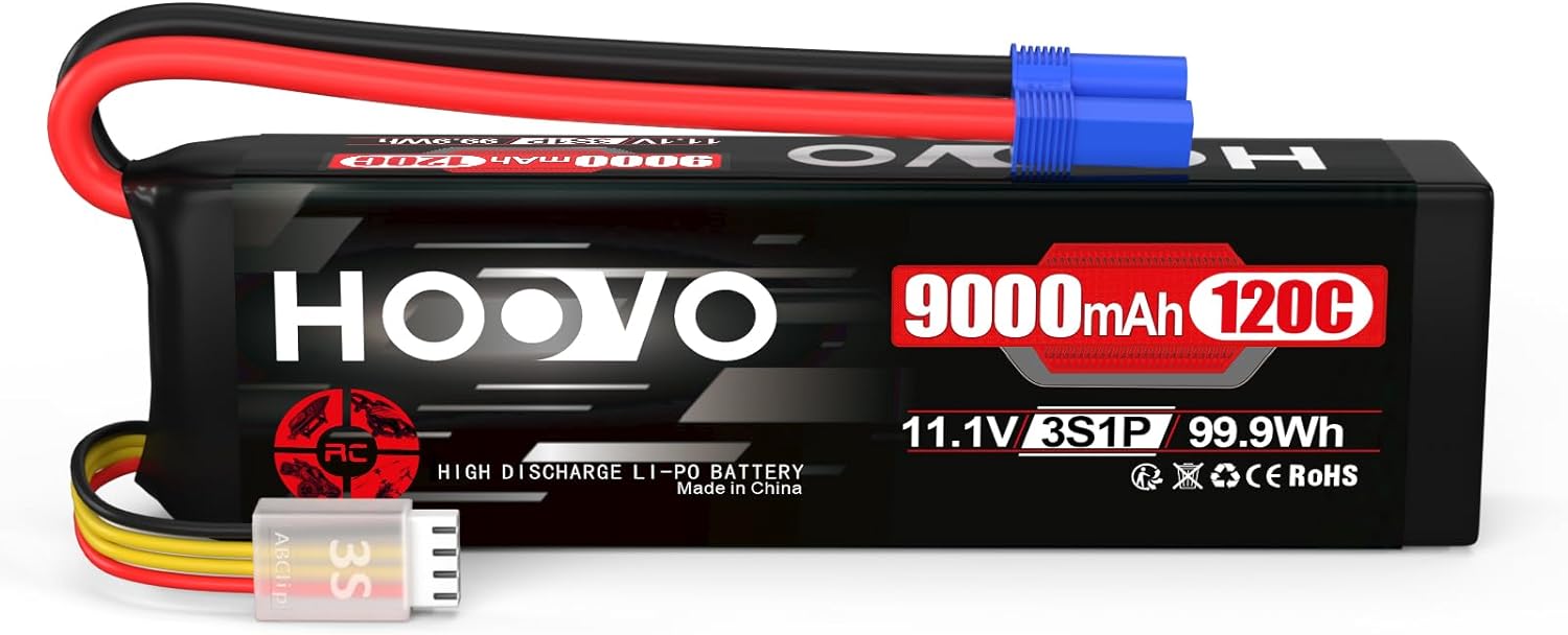 - 【3S 11,1V 9000mAh 120C Lipo Akkus Spezifikation】 Spannung: 11,1V; Kapazität: 9000 mAh; Entladungsrate: 120C; Steckverbinder type: EC5 Anschluss. SoftCase Weiche Hülle. Zellen: 3S; Konfiguration: 3S1P; Zellenspannung: 3,7 ~ 4,2 V; Der HOOVO 3S