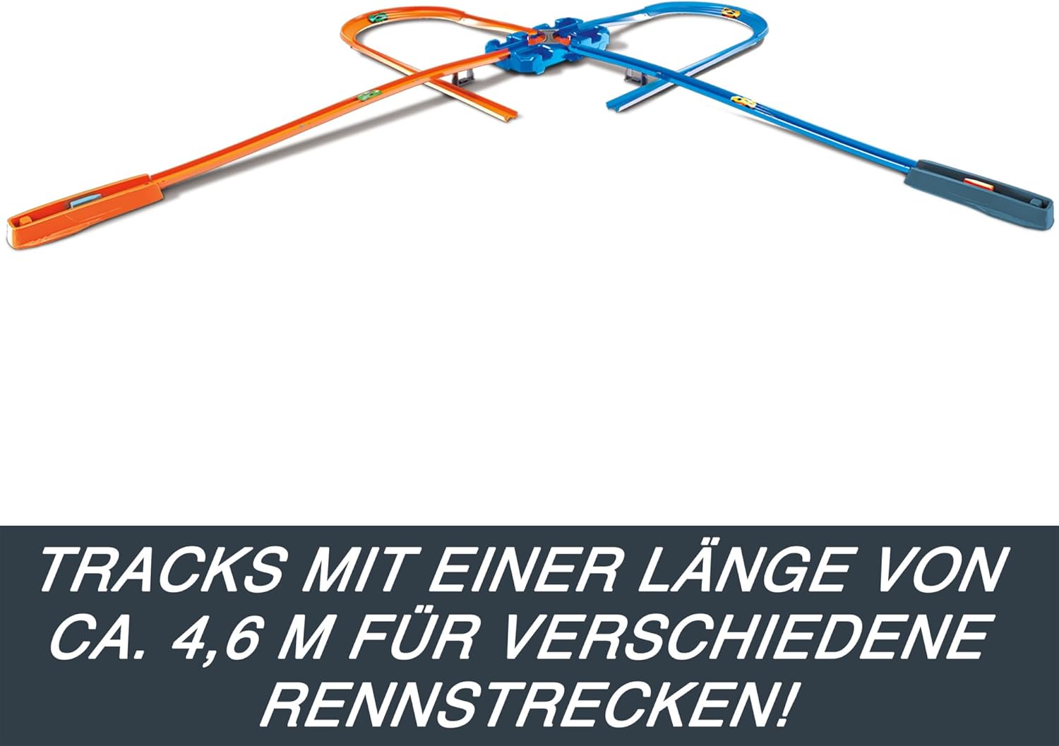 - Enthält eine Basis (die Box), Trackteile, steile Kurven, Crash-Zone-Deckel, Starter, Spurwechsler und zwei Fahrzeuge!
