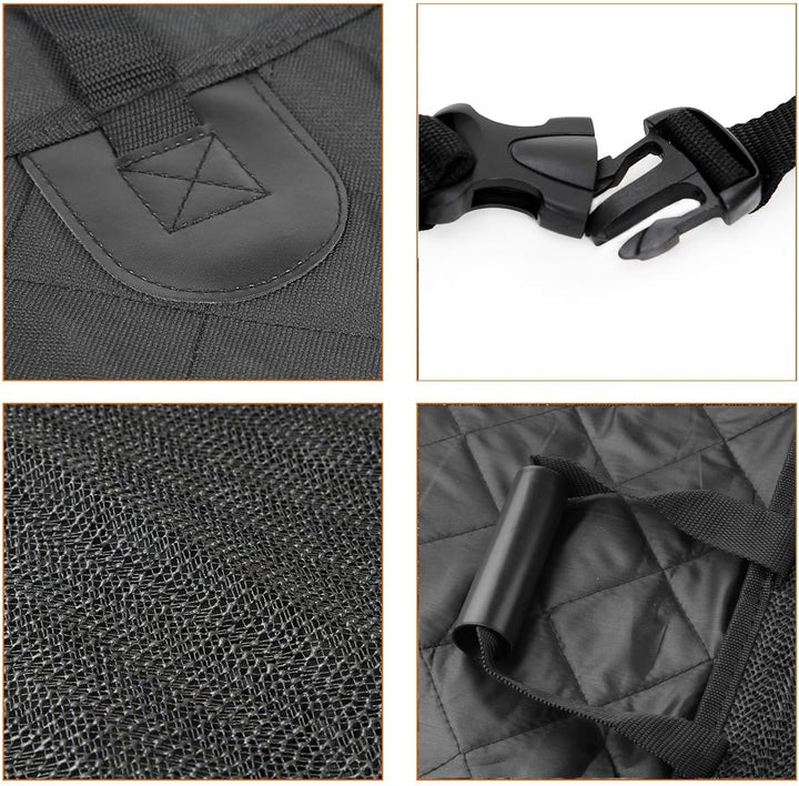 - KOMPLETTSCHUTZ FÜR TÜREN, KOPFSTÜTZEN UND RÜCKBANK – mit extra haltbaren Seitenschutzteilen mit Reissverschlüssen – diese Hängematte für Hunde schützt den Autositz und sichert den Hund ab. Die Seitenteile schützen die Türen und verhindern die Verschmutzung des Fussraumes. Alle Haare und der Schmutz bleiben auf dem Autositzbezug der Rückbank. Die Schutzbezüge für die Kopfstützen schützen den vorderen Bereich und die Rückseite der Kopfstützen gegen Speichel und Schmutz.