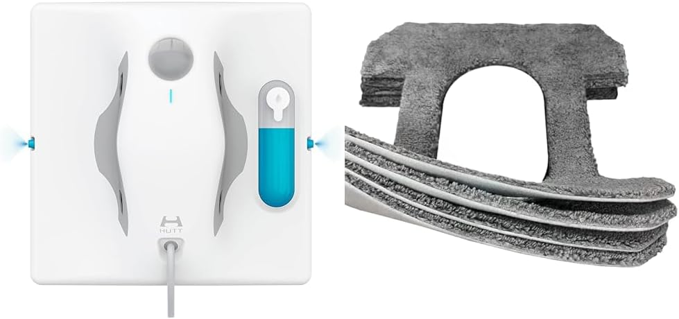 - Bundle: Hutt W8 Fensterputzroboter & Wischroboter (3800Pa Saugleistung, 2-fach Sprühsystem, 80ml Tank, auto Wegplanung, Laser-Sensoren, Fernbedienung, 4 Wischtücher) + nochmal 4er Set Ersatz Mikrofaser-Wischtücher