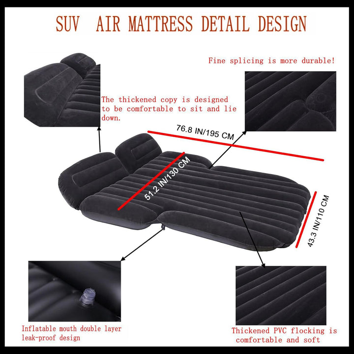 - √ Flocking SUV aufblasbare Matratze Abmessung: 185 cm (l) * 110 cm (w) / 73 "* 43" Rückenlehnenabmessung: (80 +57) cm (l) * 25 cm (h) / (31,5 "+22") * 9,8 " Bitte messen Sie vor dem Kauf die Grösse Ihres Auto-Rücksitzes und die sorgfältige Vergleichsdetails der detaillierten Grössenzeichnung.