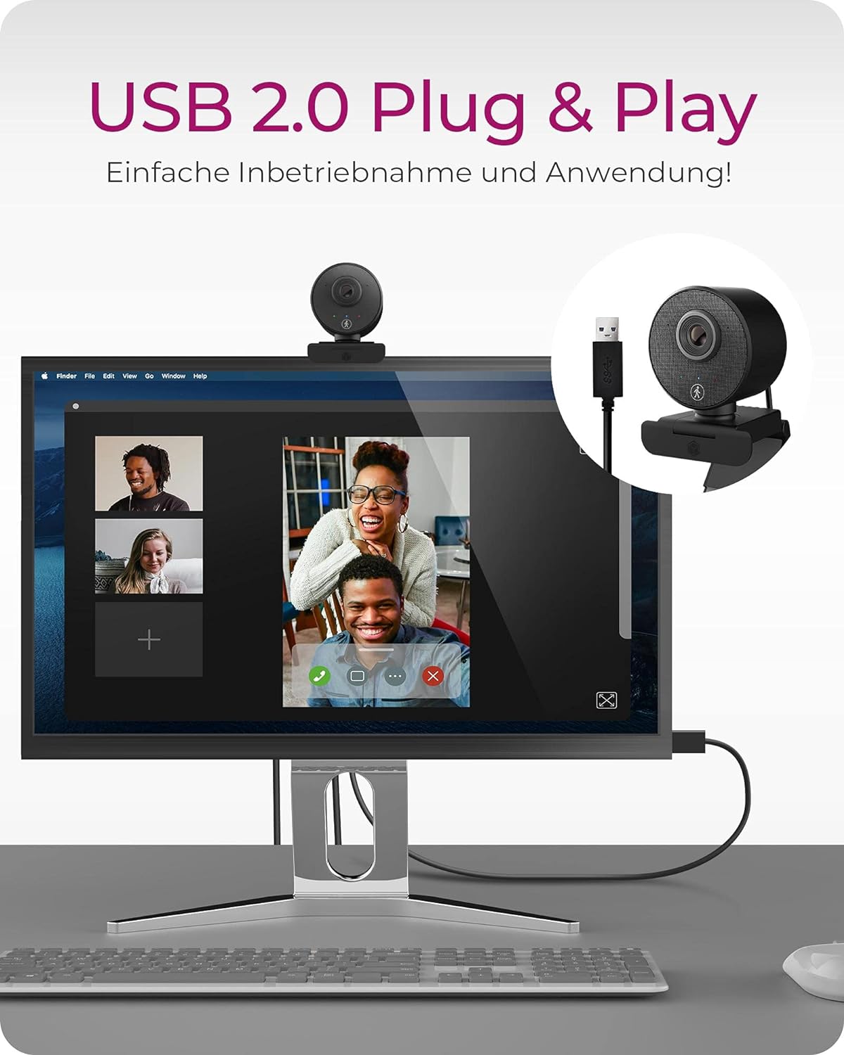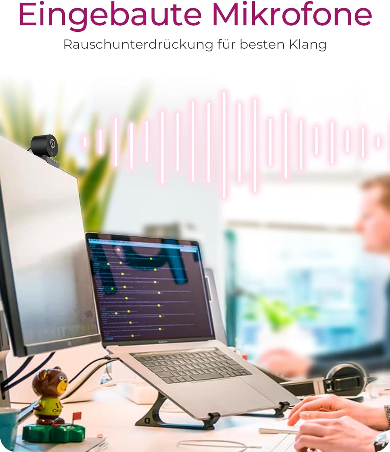 - KLAR & DEUTLICH: Unsere Webcam verfügt über integrierte Dual-Mikrofone mit Rauschunterdrückung und überragendem Stereo-Audio-Sound, der eine klare und natürliche Tonaufnahme ermöglicht. Die Webcam ist bestens für Videokonferenzen geeignet, um auch