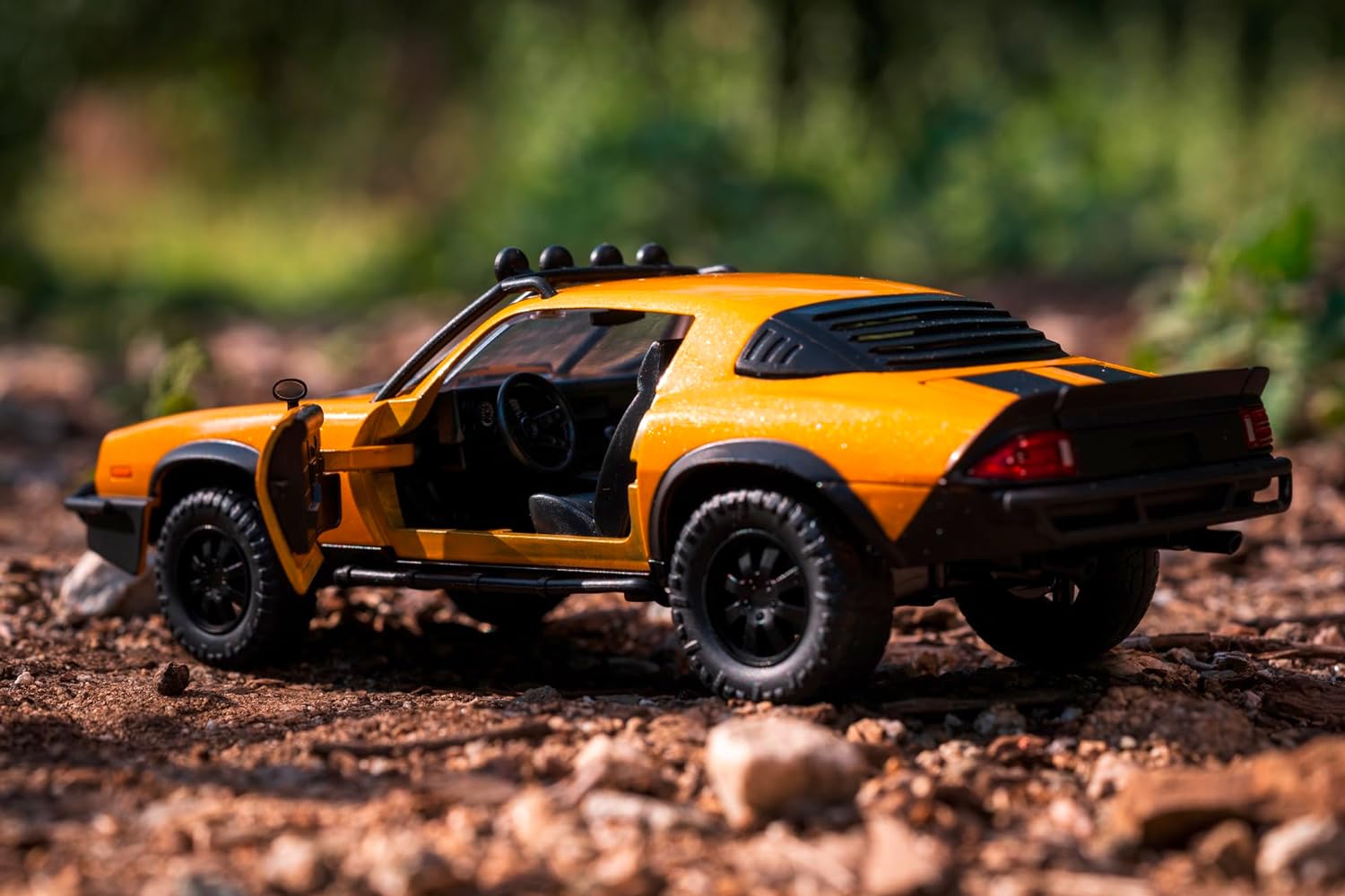 - Chevrolet Camaro 1977 - Das Transformers Spielzeug ist dem markanten Filmfahrzeug im Massstab 1:24 (20 cm) nachempfunden - mit stabiler Metallkarosserie, Freilauf sowie Türen und Kofferraum zum Öffnen