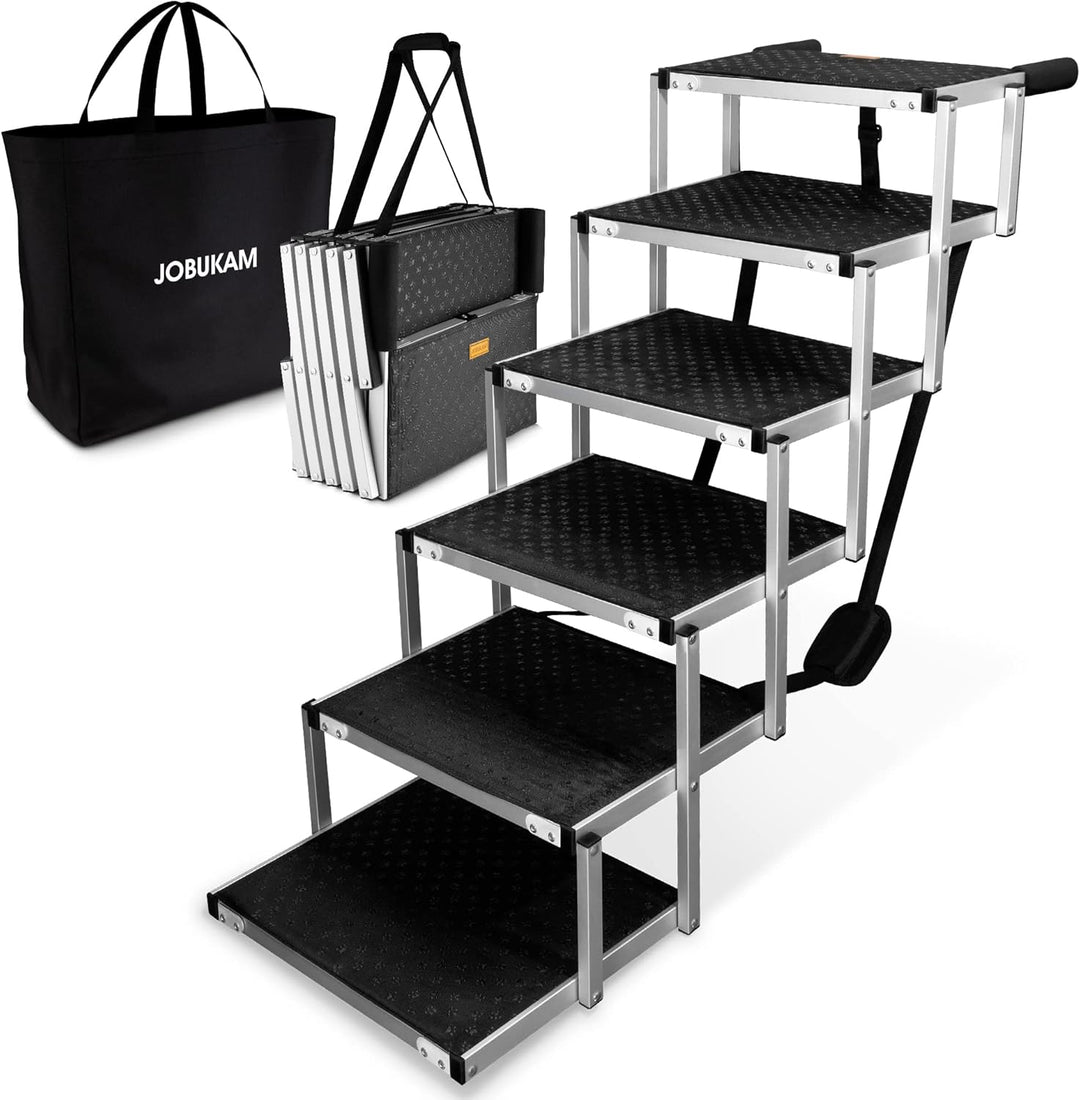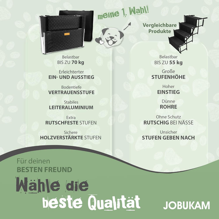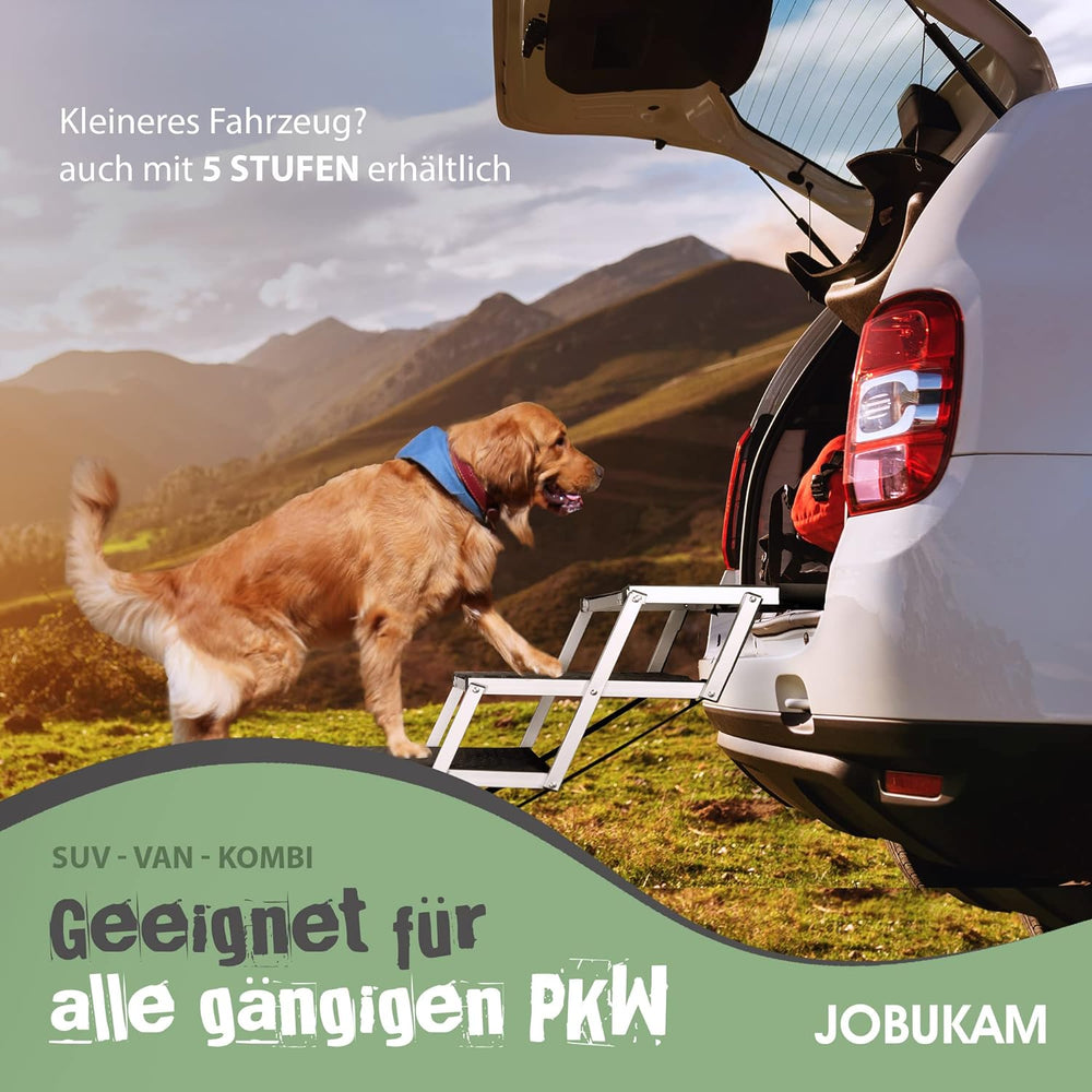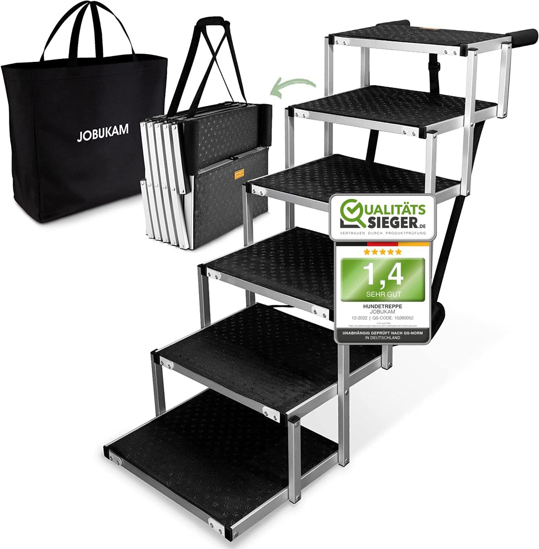 - GELENKSCHONEND - Anders als schräge Hunderampen schonen die 6 waagrechten Stufen dieser klappbaren Hundeleiter die Gelenke Deines Lieblings beim Ein-und Ausstieg in den Kofferraum oder die Hundebox