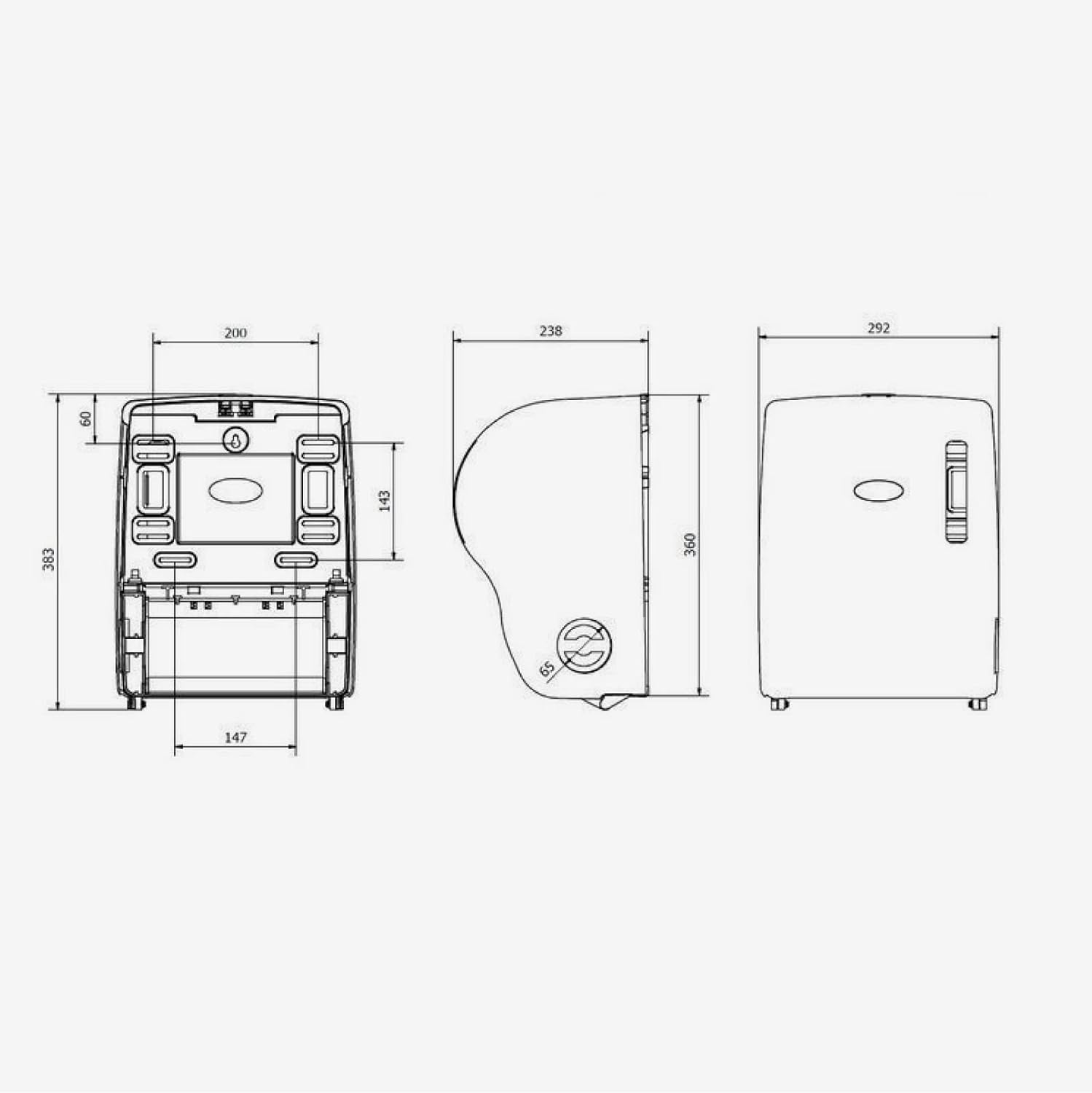 - Geeignet für Tuchrollen mit einem Durchmesser von maximal 210 mm. Das Autocut-System schneidet bei jeder Entnahme das Papierhandtuch automatisch auf eine Tuchlänge von 28 cm
