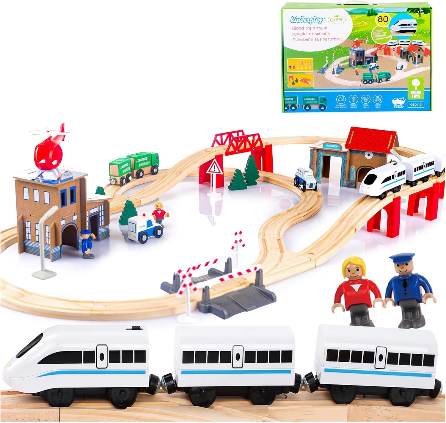 - ✨【Eisenbahn Kinder aus Holz 378 cm lang!】- Die Kinderplay Holzeisenbahn Set ist 378 cm lang. Eisenbahn set selbst können mit anderen Eisenbahnen von solchen Marken, wie Ikea, Tesco und Kinderplay Green kombiniert werden. Schöne Eisenbahn Kinder