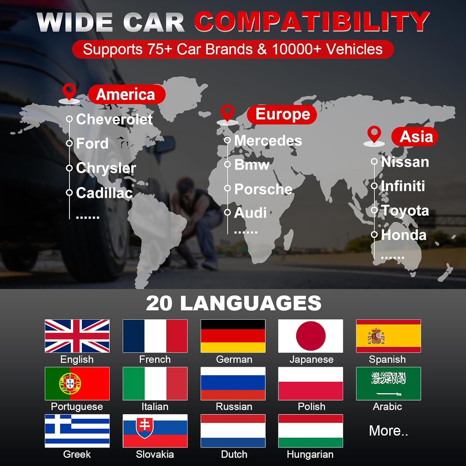 - 🚗【Breite Abdeckung der Automarken + 16 Sprachen】KINGBOLEN S500 obd2 diagnosegerät unterstützt 75+ Automarken auf der ganzen Welt, funktioniert auf über 10000+ Automodellen.kompatibel mit OBD2/EOBD-Protokollen.Unterstützt 16+ Sprachen: