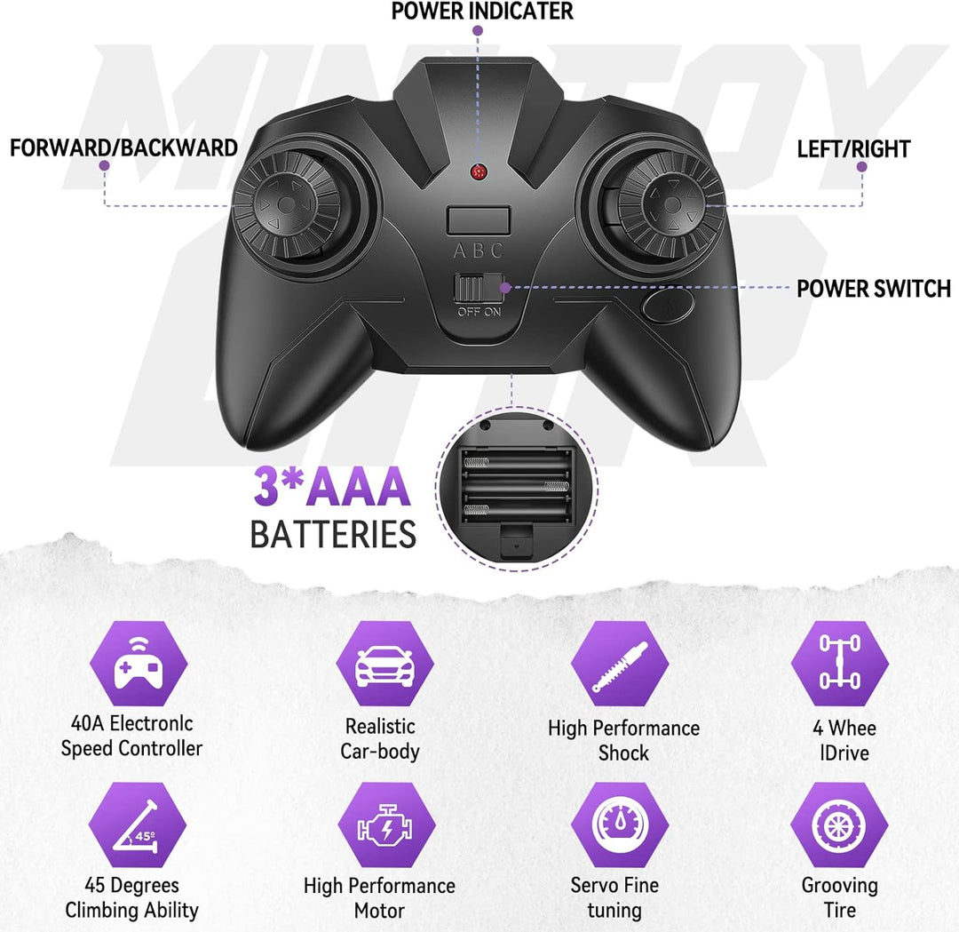 - 【Hochgeschwindigkeits-RC-Auto】 Unsere Hochgeschwindigkeits-RC-Monstertrucks mit werden von einem hervorragenden und schnellen RC 380-Doppelbürstenmotor in einem unaufhörlich effizienten Antriebsstrang angetrieben. Mit LED-Scheinwerfern, die auch
