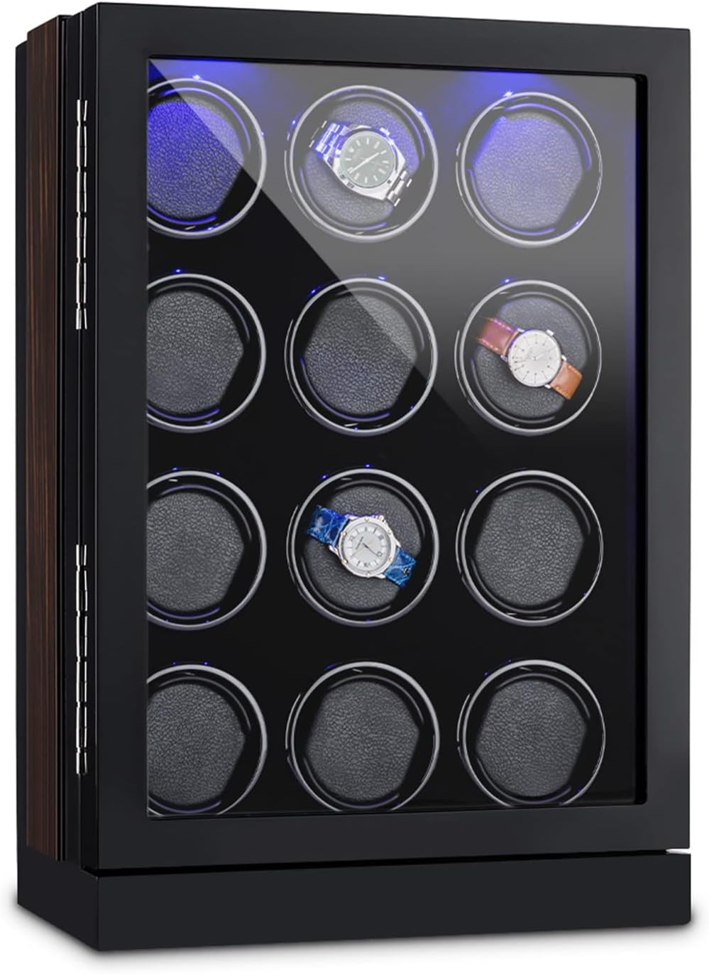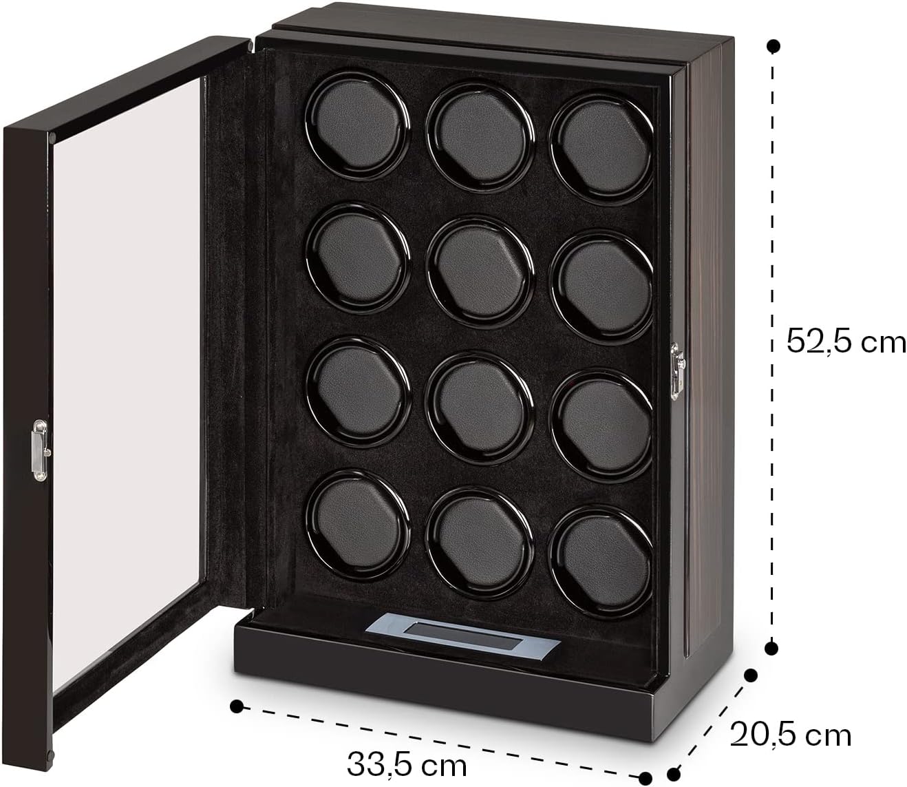 - UNIVERSAL: Zur Rotation der zwölf Uhren stehen der kompakten Uhrenbox verschiedene Modi zur Auswahl, welche die Uhren mit Linkslauf, Rechtslauf oder unterschiedlichen Intervallen über mehrere Stunden in wechselnder Drehrichtung in Bewegung halten.