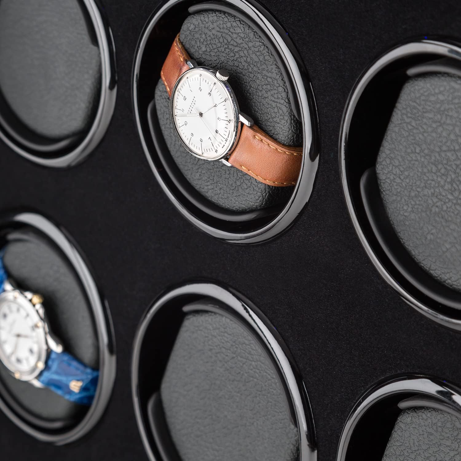 - AUGENFANG: Das ansprechende Design inklusive Schaufenster setzt den Uhrenbeweger und die Uhren stilvoll in Szene, während die in dunklen Farben gehaltene Auskleidung im Inneren einen ruhigen, eleganten Kontrast zu den ausgestellten Automatikuhren bildet.