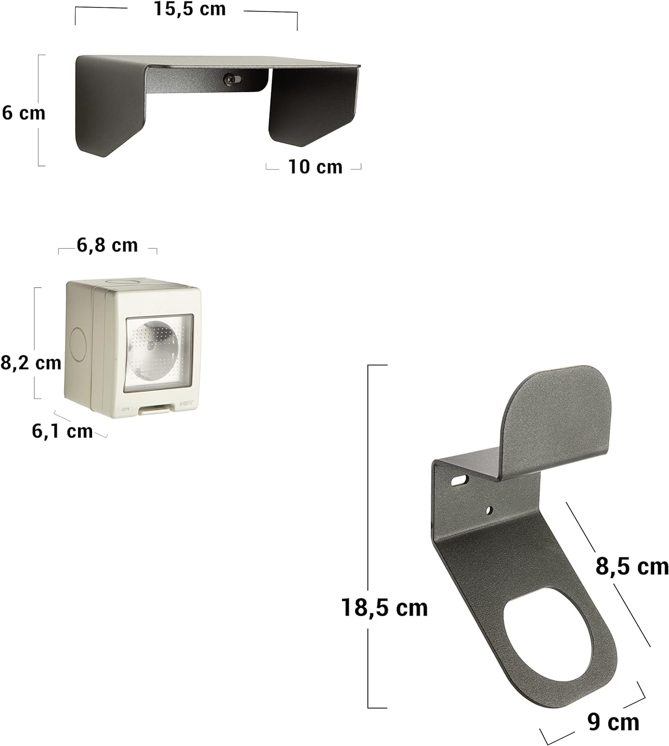 - [Robustheit]: Deckel und Kabelhalter aus Stahl, geeignet für Outdoor-Verwendung. Farbe Anthrazit