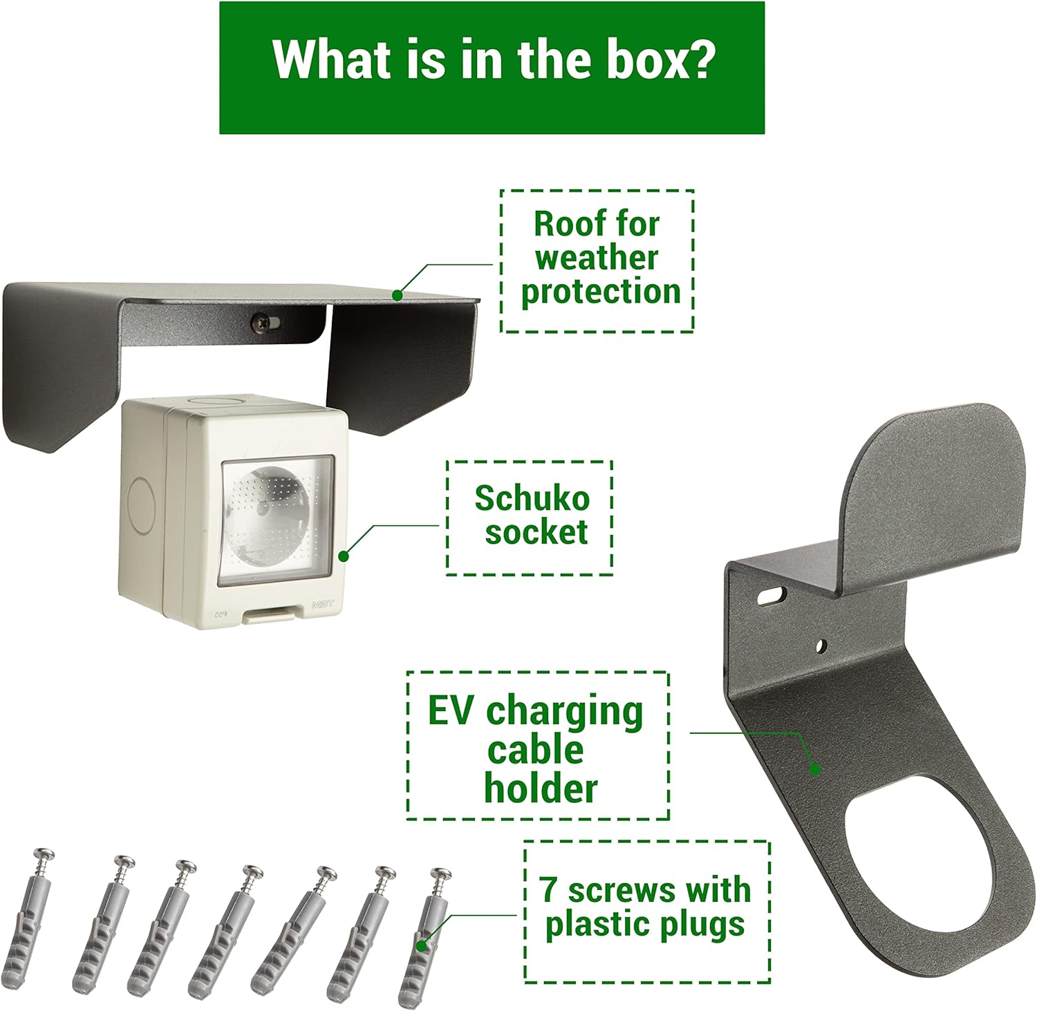 - [Alles an einer Stelle]: Hochwertige Steckdose mit Deckel und Halter für Ladekabel für Elektro- und Hybridfahrzeuge