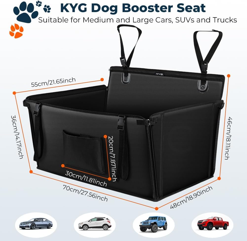 - 【Ideale Grösse】 KYG-Autositz für Haustiere misst 70 x 55 x 36 cm, ist für mittelgrosse und grosse Hunde geeignet und kann bis zu 26 kg tragen. Bitte messen Sie die Grösse Ihres Haustiers vor dem Kauf. Das faltbare Design Unserer Auto Hundesitz