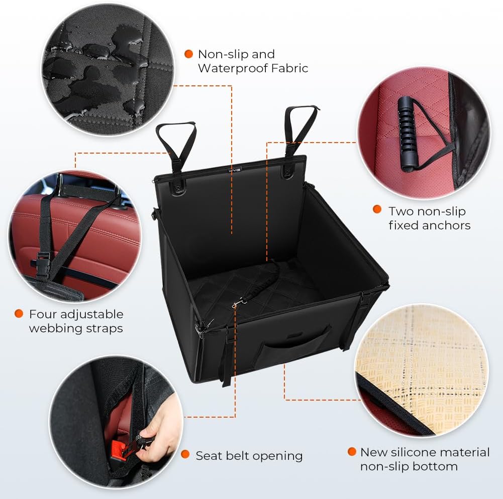 - 【Absoluter Schutz】 KYG-Autositz für Hunde mit dreifacher Befestigung und rutschfestem Design schützt Ihr Haustier, damit es sicher und bequem reisen kann. Vier Kopfstützengurte, ein rutschfester Anker und neue rutschfeste Granulate auf der