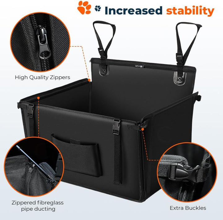 - 【Stabil und langlebig】 KYG Auto Hunde Sitz hat stabile Seitenwände, die Ihrem pelzigen Kind umfassenden Schutz bieten. Darüber hinaus verbessern die Ecken der Box mit Befestigungsschnallen die Sicherheit des Hundekorbsitzes erheblich. KYG Auto