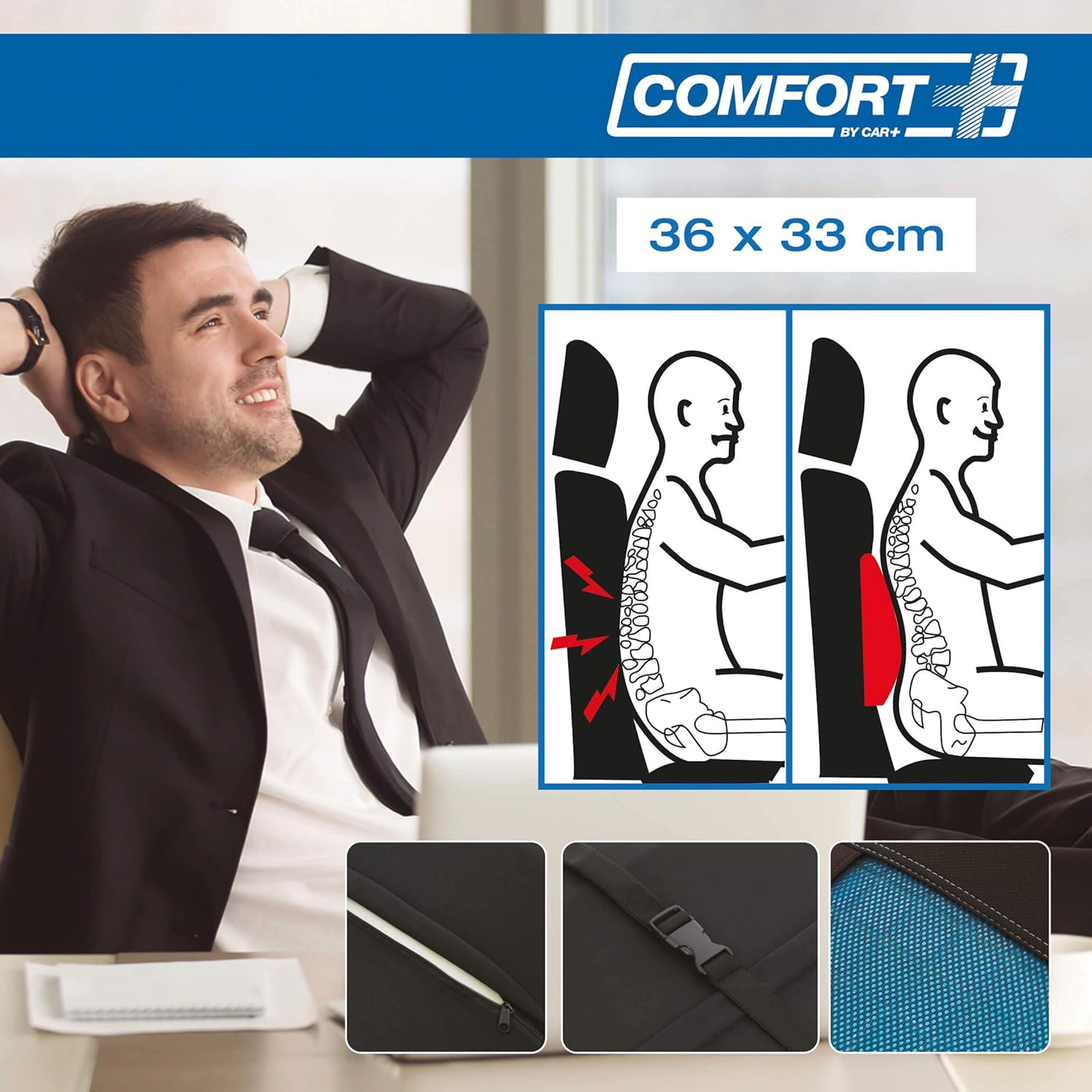 - Das Car+ Rückenkissen mit seiner Grösse von 36x33 cm ist für alle gängigen Sitze im Büro, Auto, zu Hause und auf Reisen geeignet. Das Gurtsystem fixiert es an der Position, um den Komfort auf jeder Oberfläche zu erhöhen.