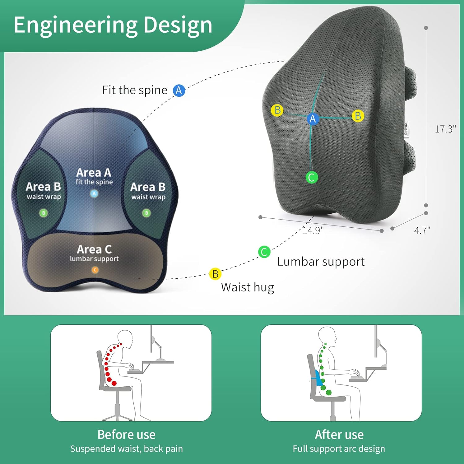 - ✨ HOCHWERTIGES DESIGN - Das Rückenstützkissen für den Stuhl ist ergonomisch gestaltet, und das Kissen für Rückenschmerzen hat ein geteiltes Design, Memory-Schaum Rückenkissen kann Ihre Rückenkurve unterstützen und eine gesunde Körperhaltung