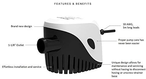 - Automatische 12-V-Bilgenpumpe 1100 GPH Kompakte, vollständig tauchfähige Elektropumpe